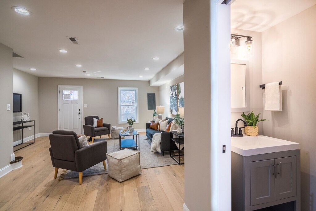 Warm and polished from porch to patio, 916 15th St SE is the kind of Hill East rowhome that lives easily and feels good the moment you walk in. Sunlight pours across wide-plank floors into an open living/dining zone that flows to a crisp kitchen—shaker cabinets, subway tile, quartz counters, and a waterfall island that doubles as command center for weeknights and weekend spreads. Slide the glass doors open and the fully fenced backyard becomes part of your living space—a broad, low-maintenance patio with plenty of room for a grill and lounge setup (container gardening welcome). A handy powder room keeps the main level guest-ready. Upstairs, three comfortable bedrooms sit together on one level, served by two modern full baths and a hall laundry with full-size washer/dryer. Central air/heat, thoughtful storage, and a welcoming front porch round out the everyday comforts. Getting around is easy, a block from Potomac Ave Metro on the Blue/Orange/Silver lines, or 4–5 minutes on foot to The Roost food hall, 12 minutes to Congressional Cemetery and the Anacostia Riverwalk access; or about a 10 minute drive to Eastern Market; quick I-695 access via the 11th St Bridges; Airports --DCA 15 min (or direct Blue Line), BWI 40 min, IAD 50 min. This property is professionally managed by Adonis Property Management. At Adonis, we proudly welcome all applicants, including those using rental housing assistance through local or federal programs. We are an Equal Opportunity Housing provider and operate in accordance with the Fair Housing Act.