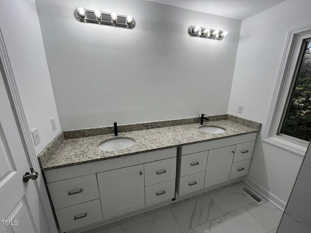 Room for rent: Newly renovated interior for this South-East Durham split-level Ranch on a 100' X 200' lot. All new interior fixtures, finishes and appliances. The Kitchen has a convenient side-door to the Carport, attached Dining Room and New: granite countertop, shaker cabinets & appliances. Flooring: gleaming red oak hardwood floors, ceramic tile in bathrooms, vinyl in the Kitchen & carpet on the lower level. The Master Bedroom has a large walk-in closet & private bathroom with ceramic floor and bath/shower. The hall bathroom has a double vanity & ceramic tile bathtub/shower. The cozy, carpeted Basement has a den with walk-out to the 12' X 14' Patio & expansive backyard. Big, open front yard, as well. New architectural shingle roof. 5 minutes to Southpoint Mall + convenience shopping & I-40 Access. 15 Minutes to Downtown Durham. Note: Do not visit this property without first contacting us to schedule a tour at the number below.
