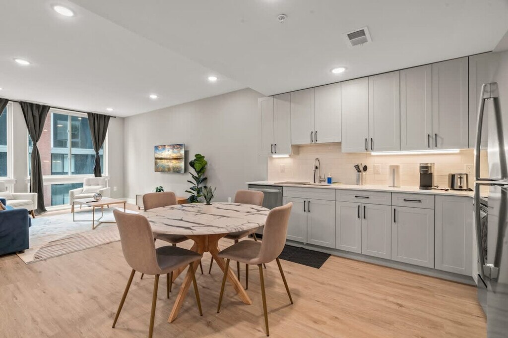 Welcome to your home away from home in the vibrant heart of Philadelphia! This cozy urban retreat offers the perfect blend of comfort and convenience. This charming 1-bedroom apartment promises a memorable stay. This inviting apartment is thoughtfully designed to cater to all your needs for an enjoyable stay. The kitchen is equipped with stainless steel appliances, including a refrigerator, oven, stove, microwave, and dishwasher. The bathroom features a contemporary design with clean lines and high-quality finishes. Pets are allowed depending on size, with an additional cleaning fee of $25 per night for stays of 1 to 4 nights, $200 for stays of 5 to 29 nights, and $300 for stays of 30 or more nights. Experience the best of Philadelphia from this stylish urban apartment. Whether you’re visiting for business or leisure, this apartment is ideally located. No shoes are allowed in the house. Please do your dishes before leaving. If there is evidence of smoking indoors, a $500 fine will be imposed. Please ensure the shower curtain is kept inside the shower basin while showering to prevent water from spilling onto the floor. Surveillance cameras are in the hallways for security, and a Minut device is in the unit for noise level. Includes a comfortable desk and chair. [SI]