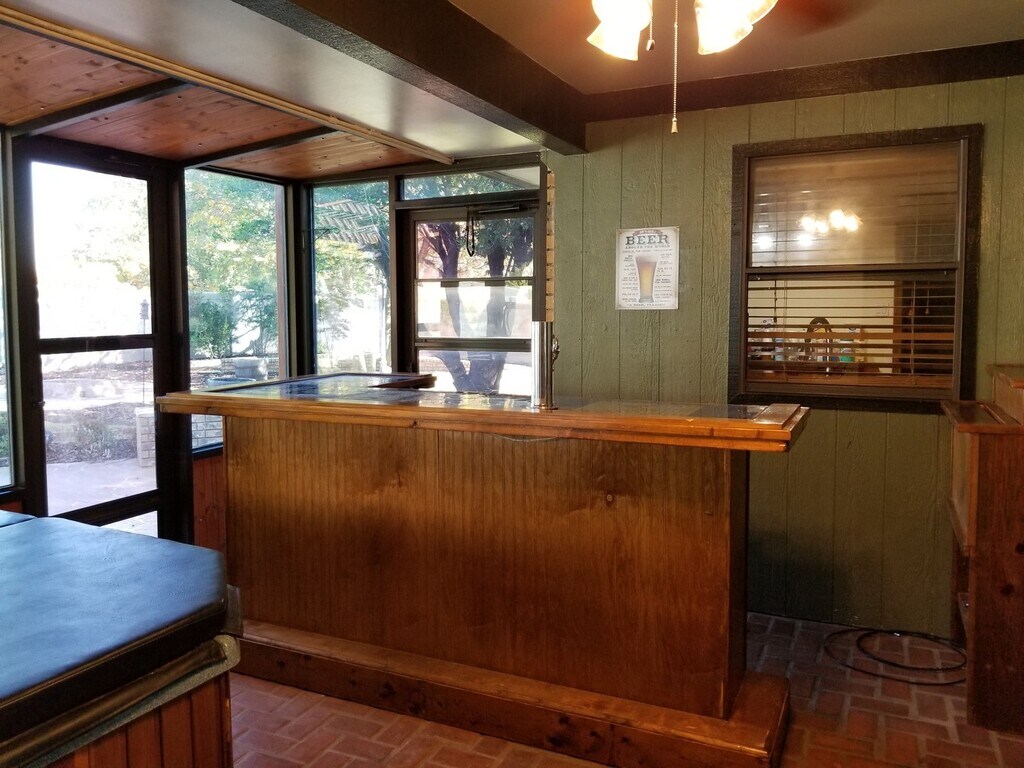 Great home that sits on corner lot with split bedroom floor plan, 2 eating areas, massive living room with beautiful wood beams and wood ceiling treatment. Large chef's kitchen with wonderful eating area, Sun room that opens to the large backyard, tall cinder block fence, impressive patio area and fire pit. Mature landscaping tall trees. Home has central heat and air total electric, sprinklers, covered patio, double garage with opener, side entry garage, large wood burning fireplace. Oversized large bedrooms and closets. Pet friendly residence.