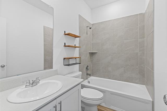 Welcome to this stunning 2023 built home. The open concept design is perfect for entertaining, with a kitchen island, bar seating, open to primary living room and a breakfast nook for casual dining. This property boasts four spacious bedrooms, two full bathrooms, and a two-car garage. The primary bedroom is a private retreat with a walk-in closet, ensuite bathroom with dual sinks, a walk-in shower, and a separate toilet closet. The split bedroom layout offers privacy and convenience. The home also features a second living area, perfect for a home office or playroom. The oversized laundry room provides ample space for all your laundry needs. The home is beautifully finished with carpet in the bedrooms and tile in the main living areas and bathrooms. The fenced yard and back patio offer a great outdoor space for relaxation or entertaining. This home is a perfect blend of comfort and modern living.