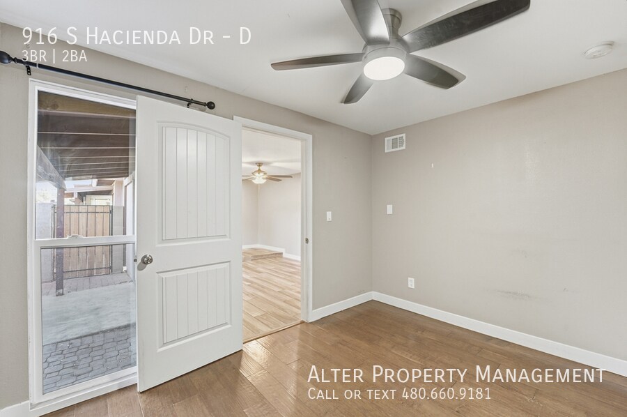 There is currently a 3 Bed 2 Bath Home for rent with 1,000 sq ft listed at 916 S Hacienda Dr. It is Available Now.
