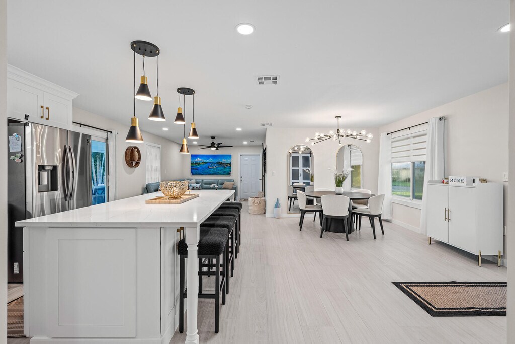 Experience the best in coastal living at The Harbour at Hobe Sound--a quiet, well-established neighborhood ideal for those who cherish the serene beauty of the area. This impeccably maintained and fully renovated 3-bedroom, 2-bathroom home at 9165 SE Yacht Club Circle is just steps from the community's stunning waterfront.This fully furnished seasonal rental offers a light-filled living space designed with a seamless blend of comfort and sophistication, featuring an updated kitchen with new stainless steel appliances, elegant quartz countertops, and luxurious ceramic tile flooring. This recently fully renovated home boasts impact windows, a new roof, and a primary suite that serves as a luxurious escape.