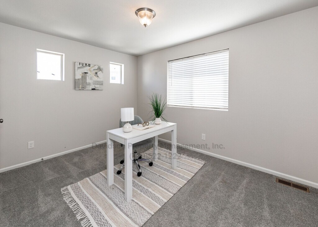 Welcome to this beautiful 3-bedroom home located in the desirable Banning Lewis Ranch community. Step inside to an open and inviting layout where the living room, dining area, and kitchen flow seamlessly together. The bright and airy living room is filled with natural light and features an elegant electric fireplace, perfect for cozy winter evenings. The kitchen is designed to impress with crisp white cabinetry, sleek stainless steel appliances, quartz countertops, and ample space for cooking and entertaining. The main level also includes a peaceful primary suite offering a private en suite bathroom complete with double vanities, a spacious walk-in shower, and a large walk-in closet. A convenient half bath rounds out the main floor. Heading upstairs you will find the remaining two well sized bedrooms and a beautiful hall bathroom. Downstairs you will discover a spacious family room perfect for game or movie nights. The laundry space and access to the garage completes the lower level. Step out from the kitchen onto a generous sized balcony perfect for grilling or relaxing outdoors. The house is complete with a 2 car garage and central air conditioning for added comfort. This stunning 3 bedroom 2.5 bathroom house is ready to be called your home. All Davidson Property Management, Inc. residents are enrolled in the Resident Benefits Package (RBP) for $45.95/month which includes liability insurance, credit building to help boost the resident's credit score with timely rent payments, up to $1M Identity Theft Protection, HVAC air filter delivery (for applicable properties), move-in concierge service making utility connection and home service setup a breeze during your move-in, our best in-class resident rewards program, and much more! More details upon application. Cross Streets: Dublin Blvd & Banning Lewis Pkwy A/C- Yes W/D- Full size - Included Dw, Ds, R, R/O, M/O *Special Requirements: May allow a pet As per House Bill 23-1099 1. The Prospective tenant has the right to provide to the landlord a portable tenant screening report, as defined in section 38-12-902 (2.5), Colorado revised statutes; and 2. If the prospective tenant provides the Landlord with a portable tenant screening report, the landlord is prohibited from: charging the prospective tenant a rental application fee; or charging the prospective tenant a fee for the landlord to access or use the portable tenant screening report.