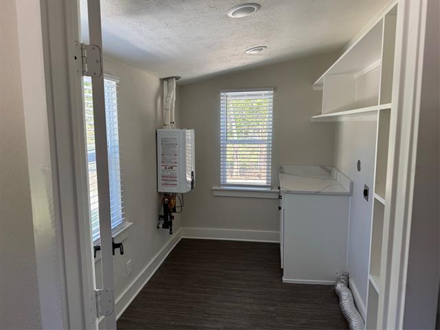 For lease in the heart of Denton, 917 Anna Street offers 980 sq ft of updated living with stylish finishes throughout. This charming home features fresh paint, attractive flooring, and modern updates that make it stand out. The kitchen showcases new countertops and updated appliances, while the bathroom includes a sleek tile surround and a refreshed vanity. Light-filled bedrooms with ceiling fans, a dedicated laundry room with built-in storage, and a brand-new tankless water heater add everyday convenience. Outside, enjoy a spacious fenced backyard with a new privacy fence, a 14' x 8' storage shed, ample driveway parking, and a welcoming covered front porch. With its upgrades and central location near Denton’s best amenities, this home is move-in ready and a rare find.