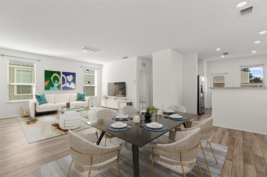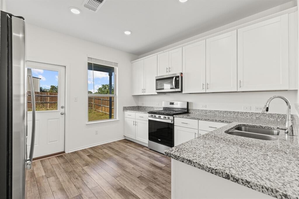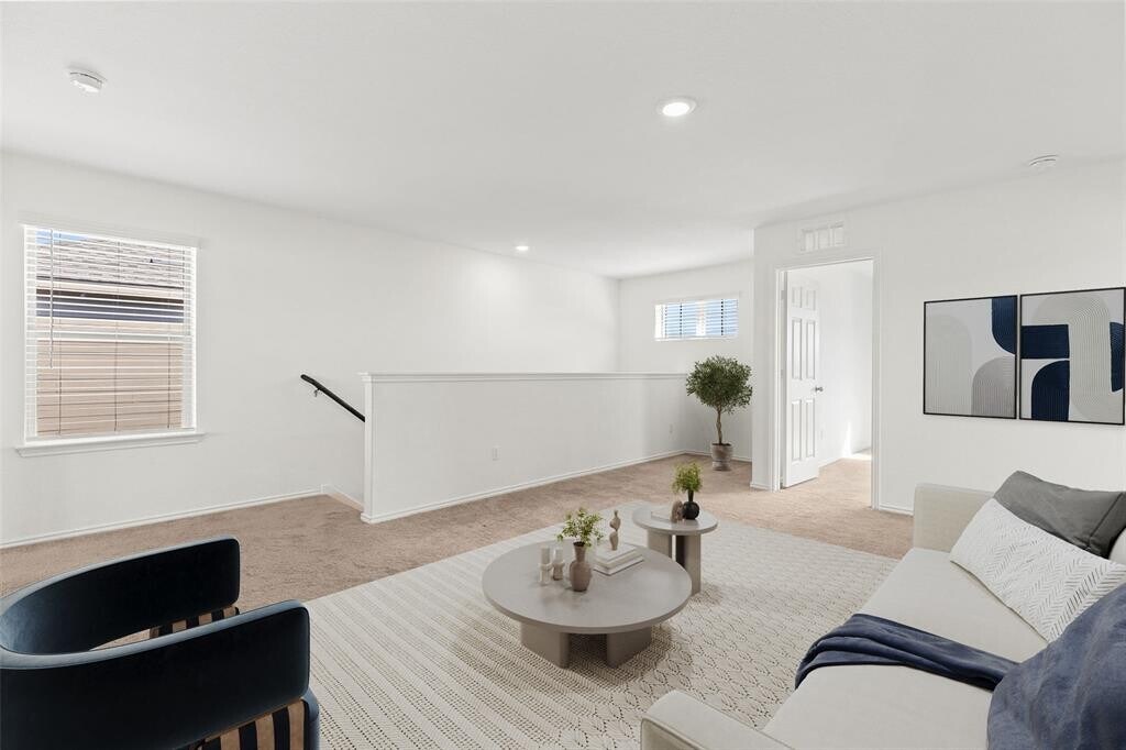 Tucked into the friendly Carlson Place community, this 2023-built 4-bedroom, 3-bathroom home blends modern comfort with everyday convenience—just minutes from I-35, Georgetown’s charming downtown, and all the retail and dining at Wolf Ranch Town Center. Inside, natural light pours across the open-concept layout, where the kitchen flows easily into the living area, perfect for catching up over coffee or keeping an eye on homework while dinner’s on. Downstairs, you’ll find a private bedroom just steps from a full bath—ideal for guests, a home office, or multigenerational living. Upstairs, the spacious primary suite offers a peaceful spot to wind down, while two additional bedrooms and a full bath create plenty of space to stretch out. The upstairs loft is wide open and flexible enough for movie nights, playtime, or a quiet reading nook. Out back, there’s no neighbor behind—just an open, private yard ready for weekend grilling or a game of catch. Carlson Place keeps things easy with nearby schools, trails, and parks, and you’ll soon have a brand-new HEB right around the corner. And with a full suite of stainless appliances (plus washer and dryer) already in place, this move-in ready home makes settling in effortless.