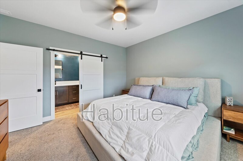 Large 2nd level Balcony & Master suite on main level, with Tile and quartz in kitchen and master bathroom. High quality finishes & spacious plan with open living area, large bedrooms and huge bonus space and abundant storage. Dual vanities in master and 2nd bath and a laundry room sink. Patio & fully fenced yard with bonus 7x9 storage area in the garage. Backs up to 5 Mile Creek and direct access to the 5 Mile Creek pathway. Centrally located close to downtown Meridian, the Village in a quiet neighborhood. Dual zone HVAC.