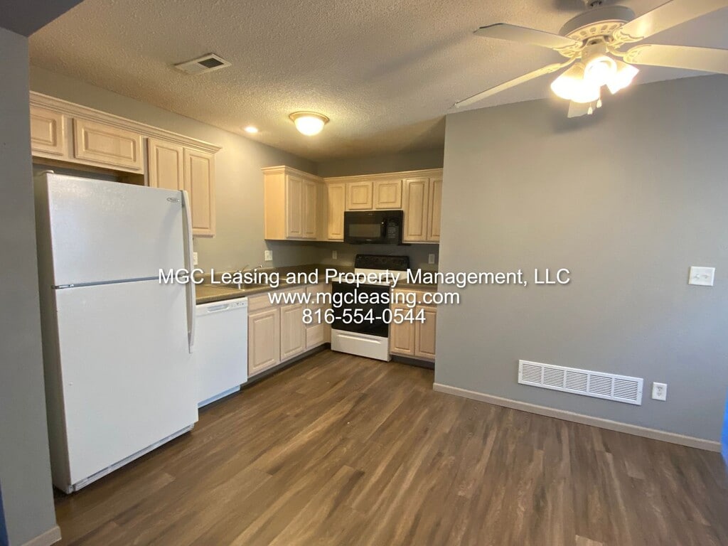 Introducing our newest townhouse available in Harrisonville, MO! This 3-bedroom, 2.5-bathroom townhouse features an open floor plan with LVT flooring on the main level, a kitchen pantry for extra storage, central air, and ceiling fans for added comfort. The townhouse also includes a walk-in closet in the master bedroom, full-size washer & dryer hookups for convenience, and a 1-car garage with opener. Residents will be responsible for paying electric, water, gas, and trash utilities, while lawn care is included. The backyard is shared, providing a space to relax and enjoy the outdoors. This townhouse is perfect for those seeking a low-maintenance lifestyle in a convenient location. Don't miss out on this opportunity. Please visit the MGC Leasing & Property Management home page, where you can also find applications, additional rental options, community information, and more. • Resident Benefits Package: More details upon application. • Pet Policy: 1 small pet • No vouchers are accepted. • Some finishes may differ per unit. • Note: Please beware of fraud, MGC Leasing does not advertise on social media.