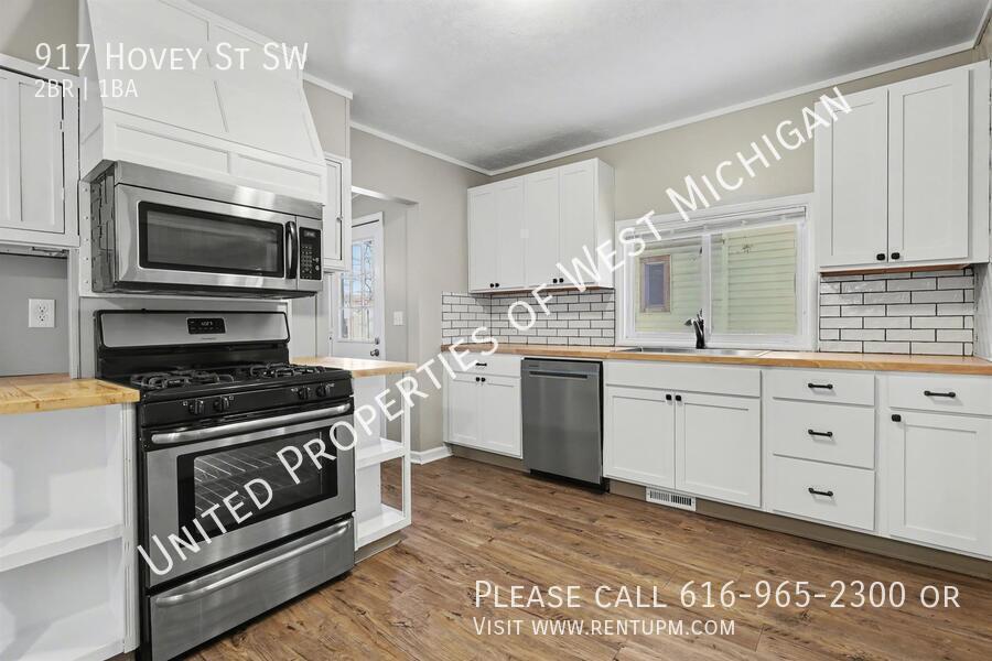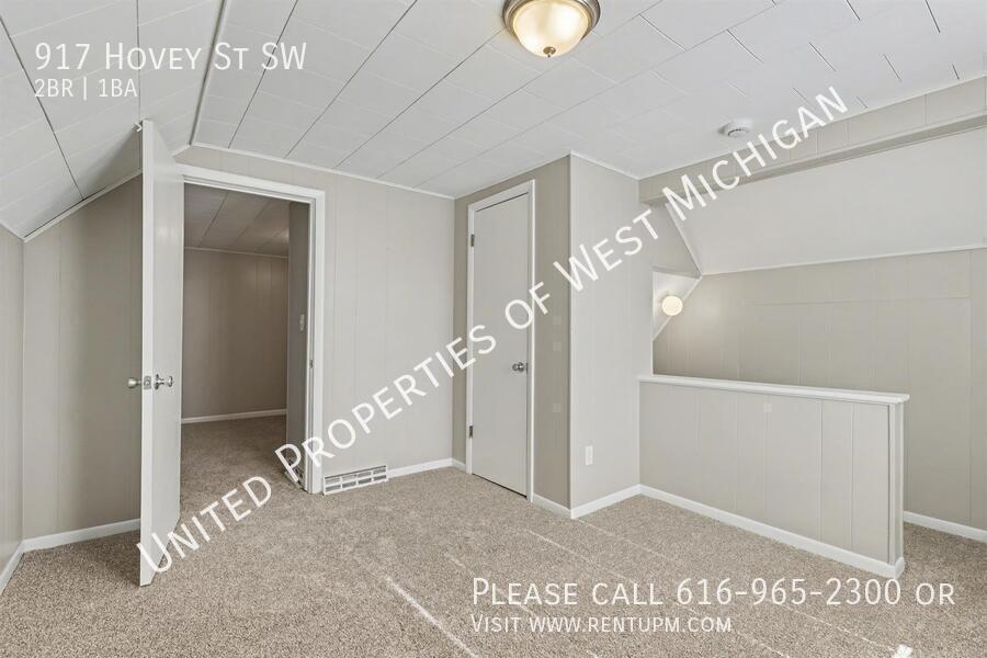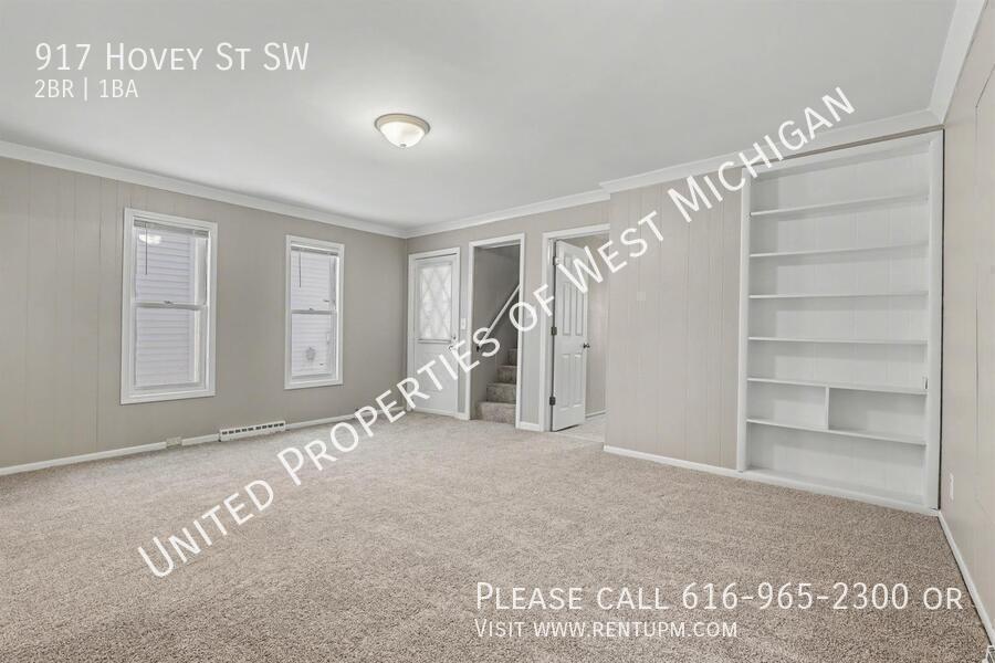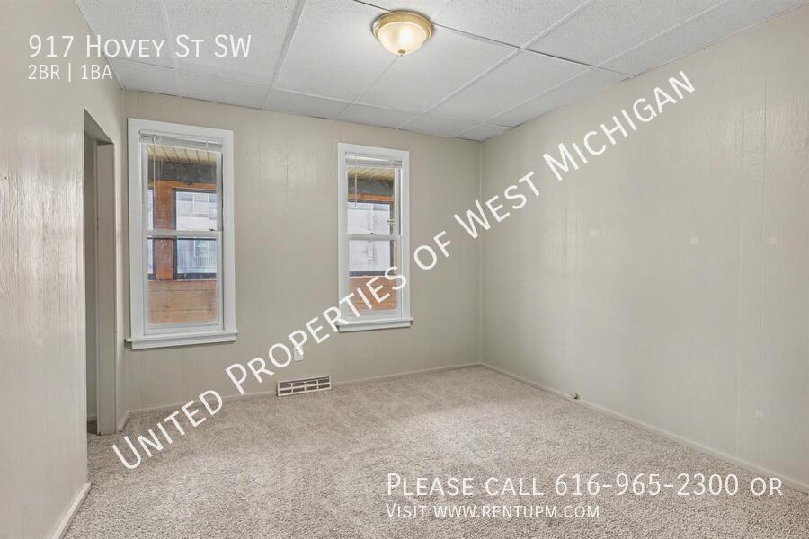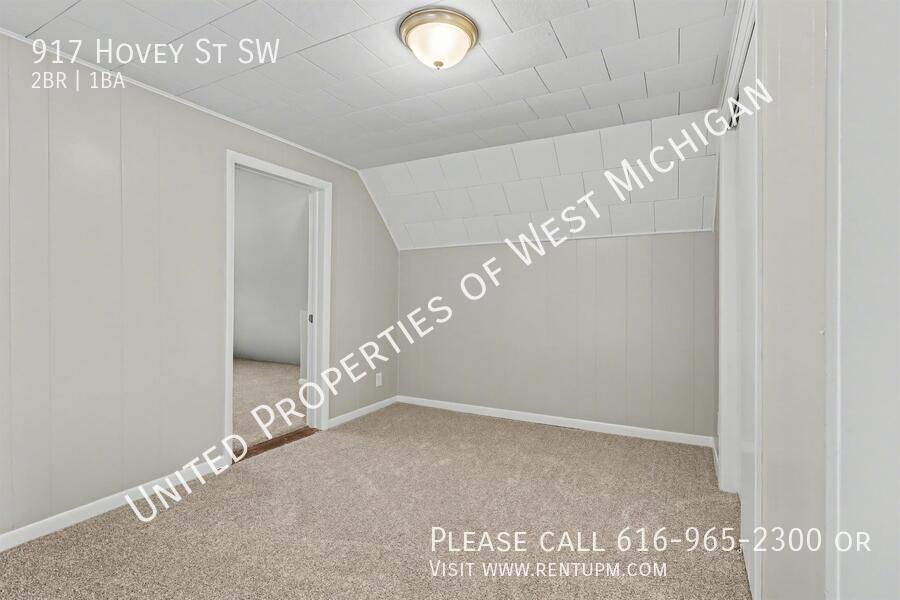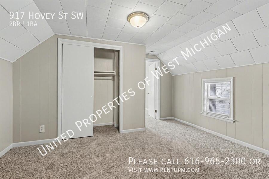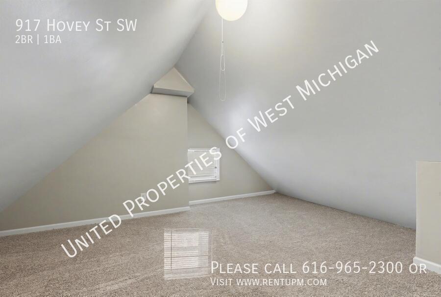 Living room: 13.2 x 17.2 Bedroom 1: 10.6 x 11.6 Bedroom 2: 11.3 x 11.6 Kitchen: 10.5 x 13.7 Bathroom: 7.0 x 9.9 Laundry: 5.4 x 7.8 Loft: 11.6 x 11.8 Other room: 3.1010 x 13.7 Front porch/Entry: 5.3 x 17.0 and 5/2 x 13.6 Welcome to 917 Hovey! This newly remodeled 2-bedroom, 1-bath home in the SWAN neighborhood of Grand Rapids features fresh paint, brand-new carpet throughout, and stainless steel appliances. Enjoy the convenience of an in-unit washer and dryer, a 1-stall garage, off-street parking, and a fully fenced backyard. Move-in ready and close to parks, shopping, and downtown—schedule your showing today! United Properties | | Schedule a showing: View application criteria: Submit an application: View pet policy: Once approved, you can secure your new home with a holding fee equal to one month’s rent, which reserves the property and is applied toward your security deposit. Based on a few items, the total deposit may be one month or one and a half times the rent; if higher, the remaining balance is due before move-in. United Properties of West Michigan has been helping residents find great homes since 2006 and is proud to be West Michigan’s largest property management company with a 4-star-plus Google rating. All residents enjoy the United Properties Resident Benefit Package, which includes: - Monthly credit reporting to the major credit bureaus - Rewards for on-time rent payments - Ongoing pest control protection This added value is $25/month, in addition to the listed rent. Learn more: We’re excited to help you find your next home and make your move-in experience as smooth as possible. Welcome home with United Properties of West Michigan! Early Renewal Option Lease Must End June 30th No A/C Porch Front Covered Porch Three Season Tenant Pays Gas Water Heater Gas