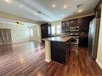 Beautiful 3-bedroom plus den home located in the desirable southwest area! This property offers an open and functional floor plan with a spacious great room, kitchen featuring granite countertops, custom cabinets, center island, and breakfast bar. Upstairs includes a generous primary suite with walk-in closet, double sinks, and soaking tub. This house also offers shutters and ceiling fans. Low-maintenance backyard with patio and block fencing. Conveniently located near schools, parks, shopping, restaurants, and freeway access. The rent includes $48 sewer/trash fee. Will consider small pets.
