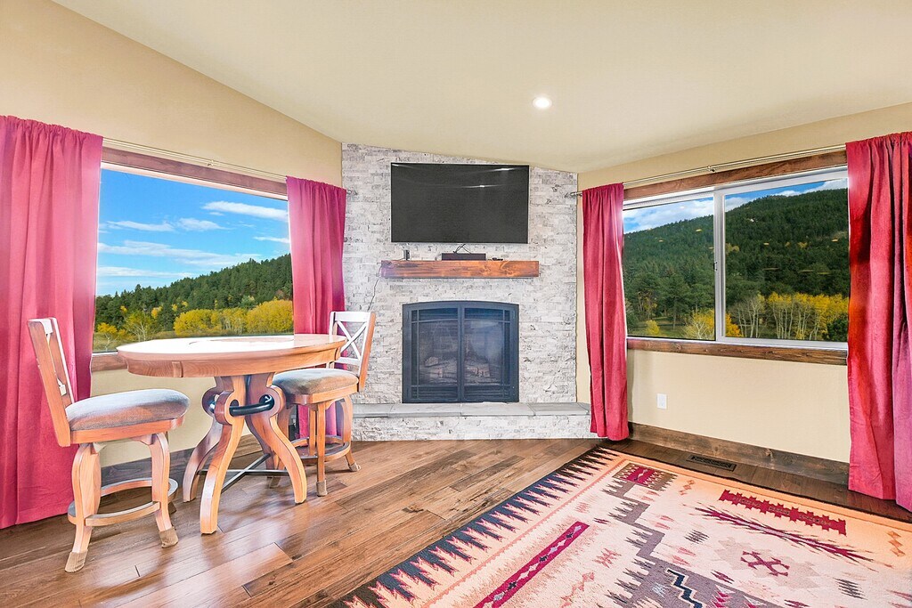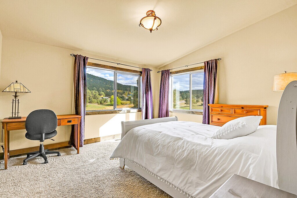 LIVE THE MOUNTAIN LIFESTYLE! Welcome to this beautifully updated, fully furnished, oversized 2-bedroom, 2-bath attached ADU located in the peaceful Evergreen Meadows community. Enjoy breathtaking mountain views from nearly every window and a true sense of Colorado living in this quiet, scenic setting. This spacious home features a full-sized kitchen with an oversized island, perfect for cooking or entertaining, along with modern finishes and ample storage. The open living area includes a cozy gas fireplace and large windows that fill the space with natural light. Step outside to your private deck with stunning panoramic views—the perfect place to enjoy your morning coffee or unwind at sunset. Both bedrooms offer walk-in closets, and there's a washer and dryer included for your convenience. The home also includes one garage parking space and additional driveway parking. Ideally situated, this property is just 10 minutes to Conifer, 15 minutes to downtown Evergreen and Evergreen Lake, and only 25 minutes to Denver, making it easy to balance mountain tranquility with city convenience. Outdoor enthusiasts will love the endless nearby opportunities for hiking, biking, fishing, and skiing, all just a short drive away. No smoking and no cats, please. One well-behaved dog may be considered with approval. This is a rare opportunity to enjoy a fully furnished mountain retreat with modern comfort, a private deck, and unbeatable access to everything Evergreen has to offer! Visit the Mountain Haven Property Management website to fill out an application and schedule a showing.