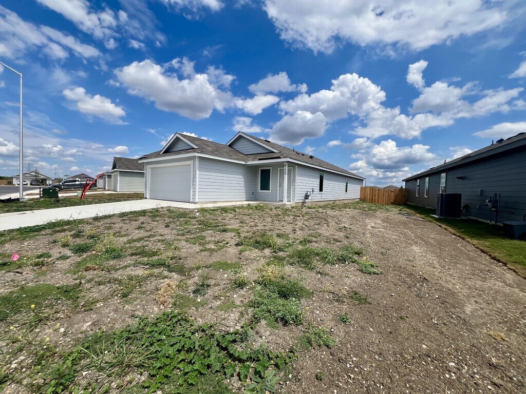 Welcome to this new home with a thoughtfully designed single-story featuring 1,600 sqft, 4 bedrooms, 2 bathrooms, and a 2-car garage. Step inside to an open-concept layout, with the kitchen, dining, and family room flowing seamlessly-perfect for everyday living and entertaining. The owner's suite enjoys a private rear-corner location, offering a tranquil retreat with a spa-style en-suite bathroom and generous walk-in closet. Three secondary bedrooms are neatly arranged along the side, providing comfortable space for family or guests. Located in the Cottage Collection of the master-planned Navarro Ranch community, this home grants access to a host of amenities-including a community clubhouse, fitness center, pool, parks, and playground-all just a short drive from New Braunfels, the Gruene Historic District, local shops, and restaurants. Residents also benefit from Navarro ISD schools. * Home will come with blinds, fridge, and grass * - - - - - - - - - - - - - - - - - - - - - - - - - - We will be looking at five criteria to make a decision: • Criminal Background - Everyone over 18 years must submit a separate Application • Credit Report - Must show no more than 2 late payments in the past 6 months. • Rental History - NO Evictions, NO Judgements, NO broken leases. • Employment Verification – Monthly Gross income must be equal to or greater than 3X the monthly rent • Animal Screening - All applicants must complete third party screening during the application process.
