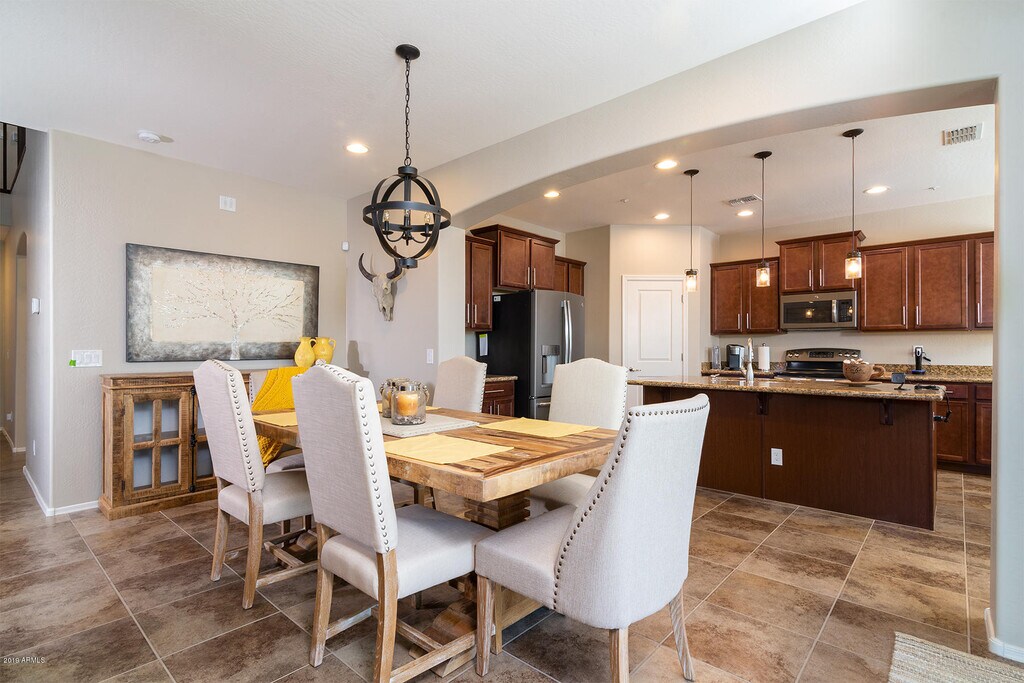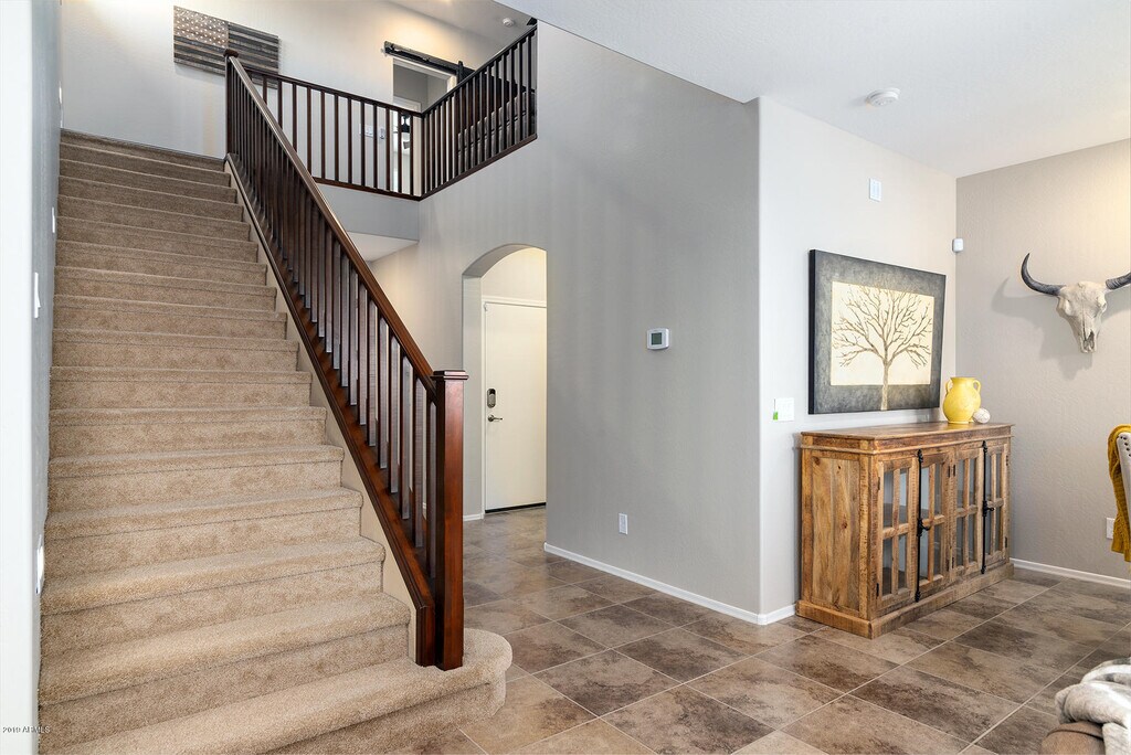 Beautifully updated and move-in ready! Freshly painted interior - September 2025! Open kitchen - great room floor plan. Kitchen boasts upgraded cabinetry,granite slab counter tops,island,pendant lighting,pantry,eat-in dining area,and stainless steel appliances. Refrigerator and washer and dryer are included. 18'' porcelain tile flooring on lower level and in all bathrooms. Three bedrooms PLUS LOFT. Low maintenance front yard landscape; back yard is all hardscape. No neighbors behind! North / south exposure and mountain views! Three car garage with epoxy floor coating. Grand entryway with stone accent.
