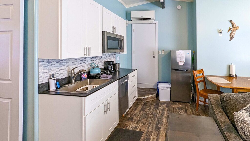 Feel at home in this newly remodeled studio apartment, perfect for business or pleasure. It comfortably sleeps two. This apartment features top-quality furniture and a TV that swivels for viewing from either the sofa or the bed. A small table and chair create an office nook. The limited but functional kitchen is equipped with a refrigerator, dishwasher, microwave, and hot plate, along with essential small appliances, plates, cups, glassware, and silverware. The 3/4 bath includes a brand-new tiled shower with a glass door and a stacked washer and dryer. A heat pump provides both heat and AC. This is a fragrance-free home, supplied with unscented paper products, dish soap, detergent, clothes detergent, and pump soap, with the exception of shampoo, conditioner, and wrapped tiny bar soaps. Cleaners use fragrance-free products. The outdoor patio is a shared space, providing a welcoming area for relaxation and enjoyment. This property is within walking distance of Shane Park. Note that the internet may be slow due to the unit's location. Quiet hours are between 10 PM and 8 AM. Unauthorized pets will incur a $250 additional cleaning fee and you are subject to immediate eviction. Tampering with outside cameras is cause for immediate cancellation of the reservation with no refund. Renters who do not comply with the non-smoking policy may be asked to leave without a refund and may be assessed with a $300 smoke removal fee, charged to the renter’s credit card. [SI]