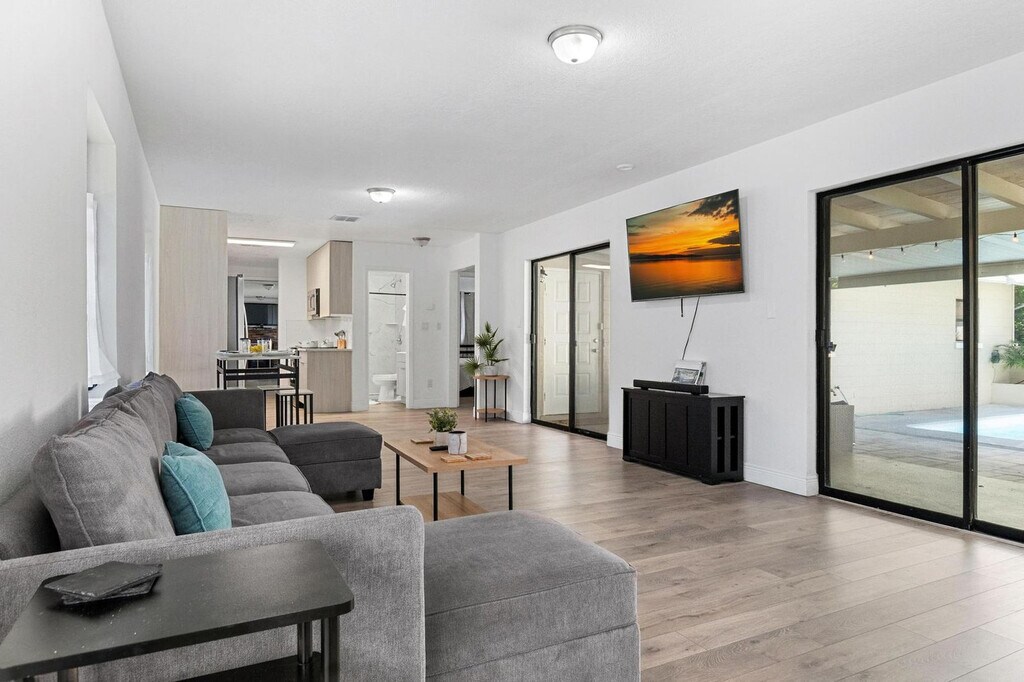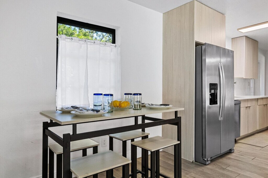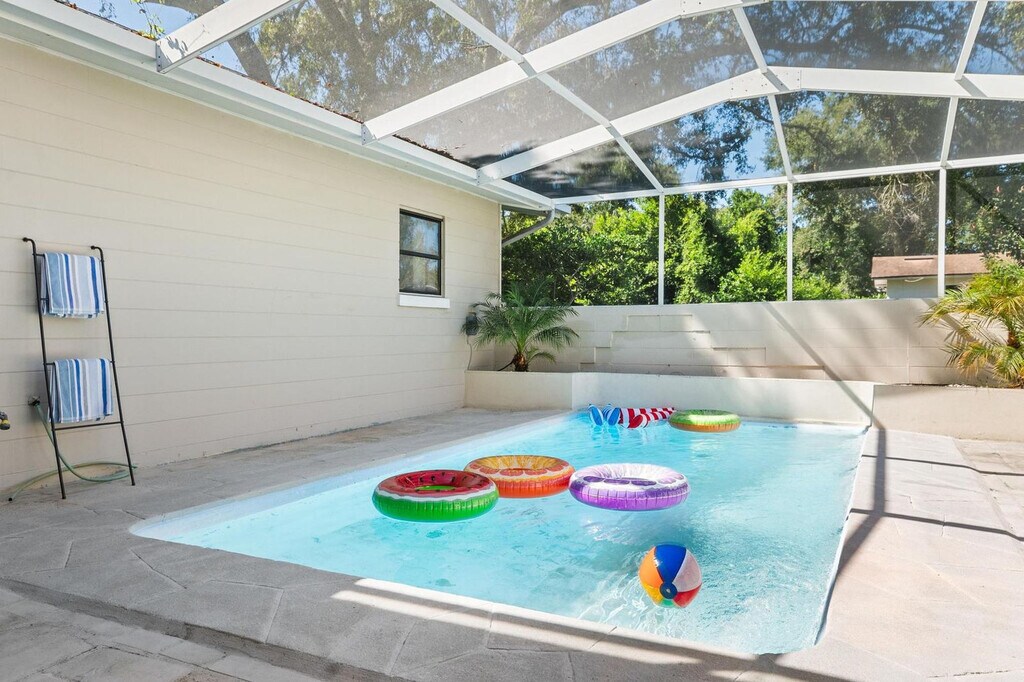 Feel at home in Little Haven, a family-friendly 3-bedroom, 2-bathroom vacation rental in Winter Haven, Florida. This single-story home, with two steps to enter, is just 3 miles from LEGOLAND and 30 miles from Disney. This updated home features modern amenities, a spacious layout, and a private pool. It includes a covered patio, sectional seating, charcoal grill, and mini fridge for outdoor enjoyment. Inside, you'll find a smart TV, dedicated workspace, fireplace, and washer/dryer. The kitchen is fully equipped with a fridge, stove, dishwasher, microwave, cooking basics, toaster, and trash bags/paper towels. Linens, towels, ceiling fans, a hair dryer, luggage racks, keyless entry, and central air conditioning are provided. Pets are welcome with a fee paid pre-trip. RV/trailer parking is allowed, and free street parking is available on a first-come, first-served basis. Located in a quiet, family-friendly neighborhood in Winter Haven, 'Little Haven' offers a peaceful retreat with easy access to everything the area has to offer. Nestled near the scenic Chain of Lakes, the home is a short walk or bike ride from Lake Shipp Park, where you'll find playgrounds, picnic areas, and boat ramps. The neighborhood is ideal for morning strolls or evening relaxation, with tree-lined streets and minimal traffic. Local shops, restaurants, and grocery stores are also minutes away. Quiet hours are from 10:00 PM to 7:00 AM. Parties or gatherings beyond your reservation are not permitted. Check-in is at 3:00 PM and check-out is at 10:00 AM. Early check-in and late check-out requests are subject to availability and may incur an additional fee of $50. All guests are required to complete a quick verification to comply with local rental regulations and help protect both the home and guests. Registration Number: DWE6317786 [SI]