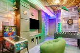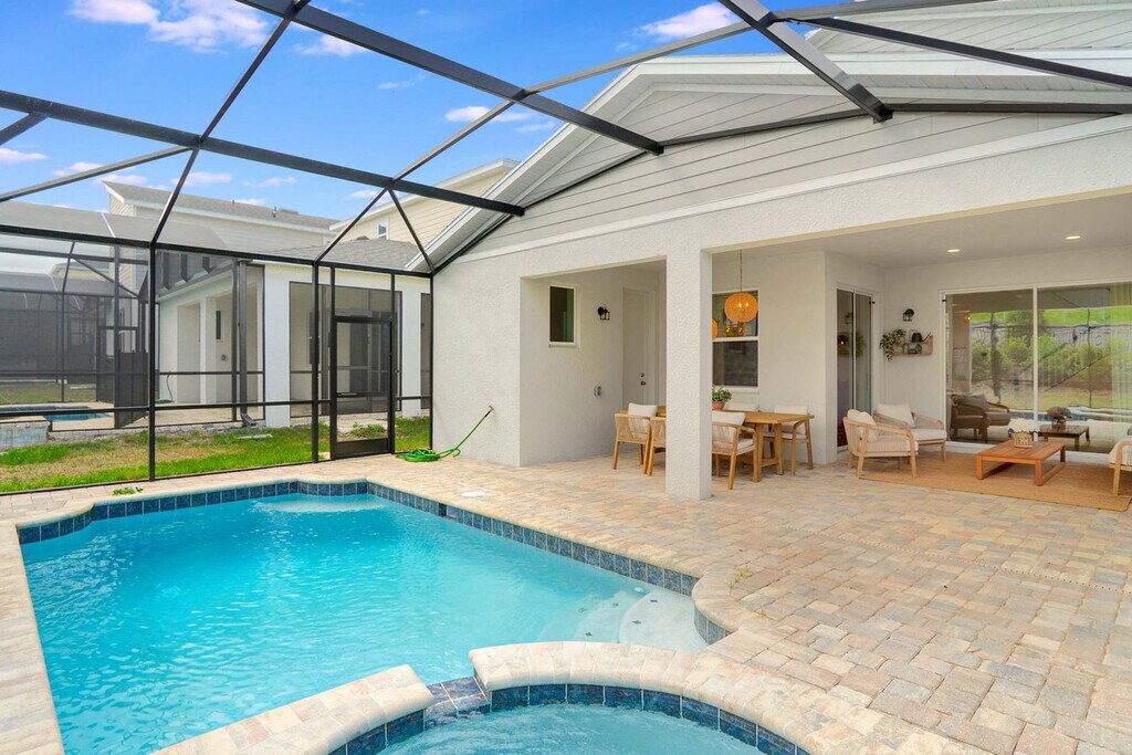 Experience a luxurious and fun-filled Orlando getaway in this stunning 7-bedroom home located in Solara Resort. Feel at home in this spacious property, perfect for families and groups. This home features elegant décor, an open-concept living area with high-end furnishings, and a fully equipped gourmet kitchen. Entertainment awaits in the Jurassic Park-themed game room and the Mickey-themed loft with games. There is also a laundry room and complimentary Wi-Fi. A welcome kit with starter supplies is provided, but replenishment of bathroom and kitchen items is the guest’s responsibility. Pool heating and barbecue use are available for an additional fee. Solara Resort is nestled in the heart of Orlando's renowned attractions. The resort boasts a wealth of amenities, including a Grand Clubhouse with fitness facilities, game rooms, and comfortable lounges. Nearby, you'll find shopping outlets and dining options. Quiet hours are observed between 10 PM and 8 AM. [SI]