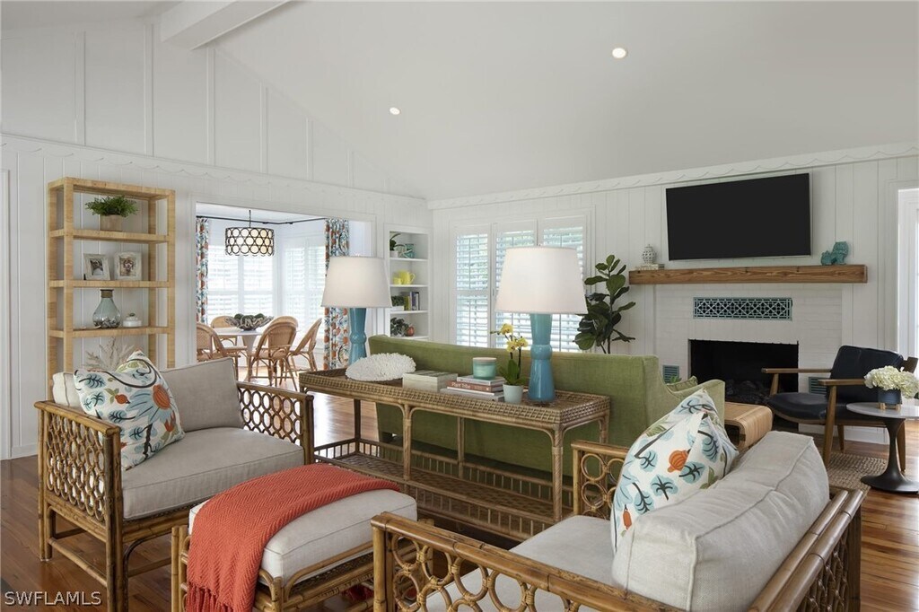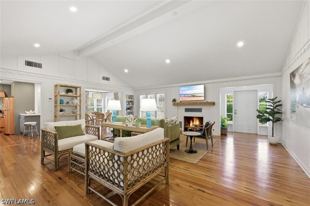 Experience the pinnacle of coastal living in this masterfully renovated 3 bedroom,3 bathroom sanctuary that seamlessly blends Old Naples vintage charm with modern refinement. Located on the beach block,Naples' sugar-sand beaches and legendary sunsets are just outside your front door. Inside,vaulted ceilings and stunning hardwood floors anchor a light-filled living space featuring a cozy fireplace and classic shiplap detailing. Cook with ease in the well-stocked kitchen,featuring everything you need to prepare your favorite family recipes. Whether hosting a family dinner in the sun-drenched dining room with seating for six or retreating to the primary suite with its elegant plantation shutters,every corner exudes comfort. Your guests will enjoy the queen-sized bed and twin beds in the guest bedrooms. Beyond your front door,the world-class boutiques and fine dining of Fifth Avenue South and Third Street South await. Live exceptionally in Old Naples!