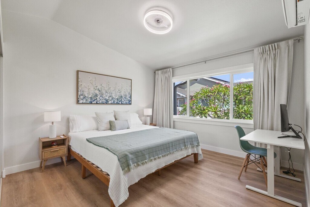 Welcome to your home away from home in Ko Olina, O?ahu’s premier resort community. This spacious 3-bed, 2.5-bath townhouse is designed for extended stays, offering both the comforts of home and the perks of a resort lifestyle. Located just minutes from world-famous lagoons, the Four Seasons and Disney Aulani resorts, championship golf, the Ko Olina shops, and the Ko Olina Marina, you'll have everything you need. Enjoy scenic walking paths, and a peaceful, well-kept neighborhood during your stay. Highlights: -Comfortably sleeps 6 across 3 spacious bedrooms -Recently renovated with fresh furnishings and updated finishes throughout -In-unit washer and dryer for added convenience -Split AC units in every bedroom and the living room to keep you cool year-round -High-speed Wi-Fi and a dedicated workspace -Easy parking in a private 2 car garage plus driveway -Outdoor patio with seating, ideal for morning coffee or evening relaxation -Enjoy Ko Olina's many amenities less than a mile away -Beach chairs, beach towels and umbrella for guest use Living Room: -Open-concept living area with large sliding doors to your private lanai -Ample natural light through large living room windows -55" Smart TV (personal account required for streaming apps) -Split AC unit cools the entire downstairs Kitchen: -Large appliances: dishwasher, electric stove top/oven, microwave, refrigerator -Small appliances: toaster, blender, coffee maker -Plates, bowls, cups, mugs, tupperware, wine glasses, silverware, etc. -Fully stocked for your cooking needs with pots, pans, cooking utensils, baking dishes, measuring cups, cutting boards, serving bowls, and more. -Kitchen Table with seating for 6 -In unit Washer and Dryer Master Suite: -King-size master suite with ample closet space -Dedicated work space with stand up desk and computer monitor -Split AC unit in master bedroom -Private ensuite bathroom with double vanity, separate water closet and standup shower Other Bedrooms: -King sized second bedroom with Split AC unit -Two twin bed room with spit AC unit -Full hall bath with shower tub combo -Vaulted ceilings throughout the upstairs About the Community: Located in the stunning Ko Olina resort area of West O?ahu, the Ko Olina Fairways is a peaceful residential community offering beautifully landscaped grounds, walking paths, and access to crystal-clear lagoons and white sand beaches just minutes away. Residents enjoy a private pool, hot tub, and BBQ area, perfect for relaxing or entertaining. Nearby, you’ll find top dining at Monkeypod Kitchen, shopping at the Ko Olina shops, and attractions like the Disney Aulani Resort and Four Seasons. Golf lovers can tee off at the Ko Olina Golf Club, and with 24/7 security and a serene atmosphere, it’s an ideal location for your extended stay on O?ahu. Minimum 30 day rental Check in time: 4pm Check out time: 10am The entire space is included in this rental. Please feel free to make yourself at home. You'll have full access to the house, garage, driveway, and available guest parking. As a guest, you'll also enjoy access to the community's shared amenities, including a swimming pool, hot tub, BBQ and picnic area. Take a stroll through the beautifully maintained grounds or head just minutes away to the nearby lagoons and walking paths of Ko Olina. We will do everything we can to ensure you have the most enjoyable, relaxing, productive, or adventurous time on Oahu as possible. Please don't hesitate to send us a message! Located in the sought-after Ko Olina resort community, this neighborhood offers the perfect blend of island luxury and laid-back living. Surrounded by lush landscaping and just minutes from O?ahu’s stunning lagoons, you’ll have easy access to sandy beaches, scenic walking paths, a championship golf course, and award-winning resorts like Disney Aulani and the Four Seasons. The nearby town of Kapolei—known as O?ahu’s “Second City”—provides everything you need, including shopping at Ka Makana Ali‘i, great local dining, and essential services. Whether you're here for work or play, you’ll love the peaceful, resort-style atmosphere and the convenience of being close to everything while feeling a world away. Getting around from this Ko Olina location is easy and convenient. You’re just a short drive to the H-1 freeway, which offers direct access to Honolulu (30–40 mins), the North Shore (45–60 mins), and other popular destinations like Kailua and the Windward coast (50–60 mins). Public transportation (TheBus) and rideshare services like Uber and Lyft are available in the area, but renting a car is highly recommended to fully enjoy all that O?ahu has to offer. Free garage and street parking are included with your stay for added ease. At Hawaii Coastal Property Management we strive to provide an experience that is cost-effective and convenient. That’s why we provide a Resident Benefits Package (RBP) to address common headaches for our residents. Our program handles identity protection, pest control, air filter changes, credit building, rent rewards and more at a rate of $39.95/month, added to every property as a required program. More details upon application. Total monthly cost of rental will be Rent Amount+$39.95+4.712% GET Apply today at