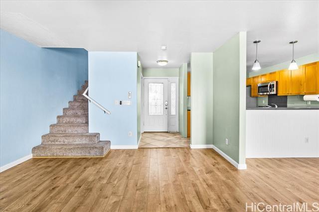 Beautiful and spacious 3-bedroom, 2.5-bath townhome in OceanRidge at Makakilo! This home offers over 1,500 sq. ft. of comfortable living space with an open-concept layout connecting the kitchen and living room, highlighted by laminate and ceramic tile flooring and carpet on stairs. Features include stainless steel appliances, split A/C units, a private fenced yard, and a large primary suite with a walk-in closet. Washer/dryer hookups available in the garage, washer/dryer NOT included. Conveniently located near parks, golf courses, beaches, schools, and the city of Kapolei. Renter’s insurance required. Pet negotiable, subject to owner’s approval. No smoking.