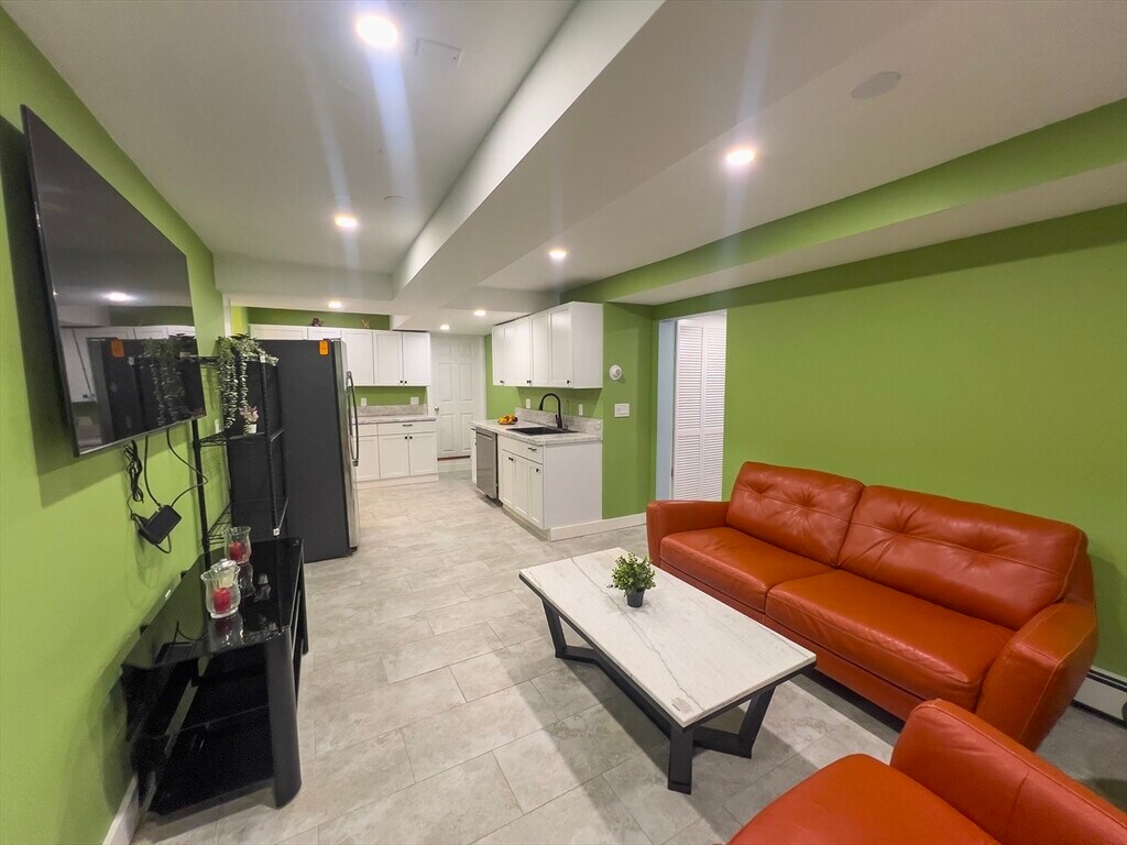 WOW heat,gas,water,electricity and comcast are all included.This recently renovated,charming one-bedroom,one-bath garden-level apartment features an open-plan living,dining,and kitchen area,along with exclusive in-unit laundry. The apartment is minimally furnished with sofa,bed,dresser,dining set and TV. The contemporary kitchen offers granite countertops,stainless steel appliances,and thoughtfully detailed finishes. The large bathroom includes modern fixtures and a spacious shower fully lined with decorative ceramic tile. Ideally located just minutes from Roslindale Center,you’ll enjoy easy access to markets,shops,restaurants,pubs,and the popular Farmers Market. Nearby bus stops provide convenient service to Dedham and Legacy Place,West Roxbury or to Forest Hills MBTA Station. Take the Orange Line at Forest Hills or the Commuter Rail from the center of Roslindale for quick transit to downtown Boston. One off street parking possible. No smoking,no pets. MLS# 73479503