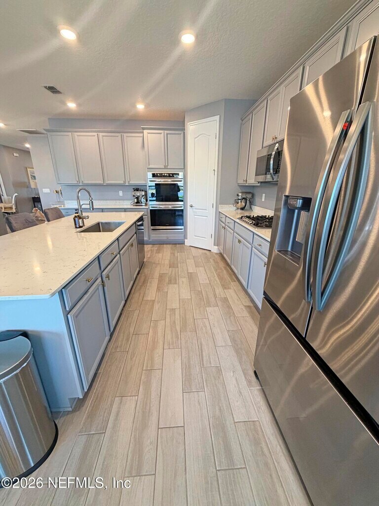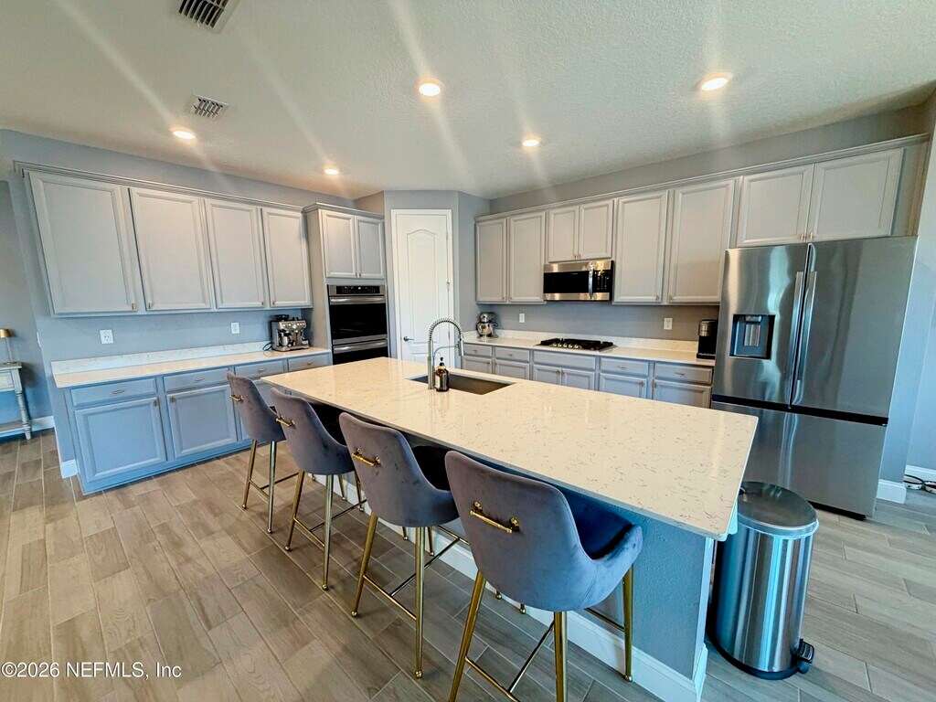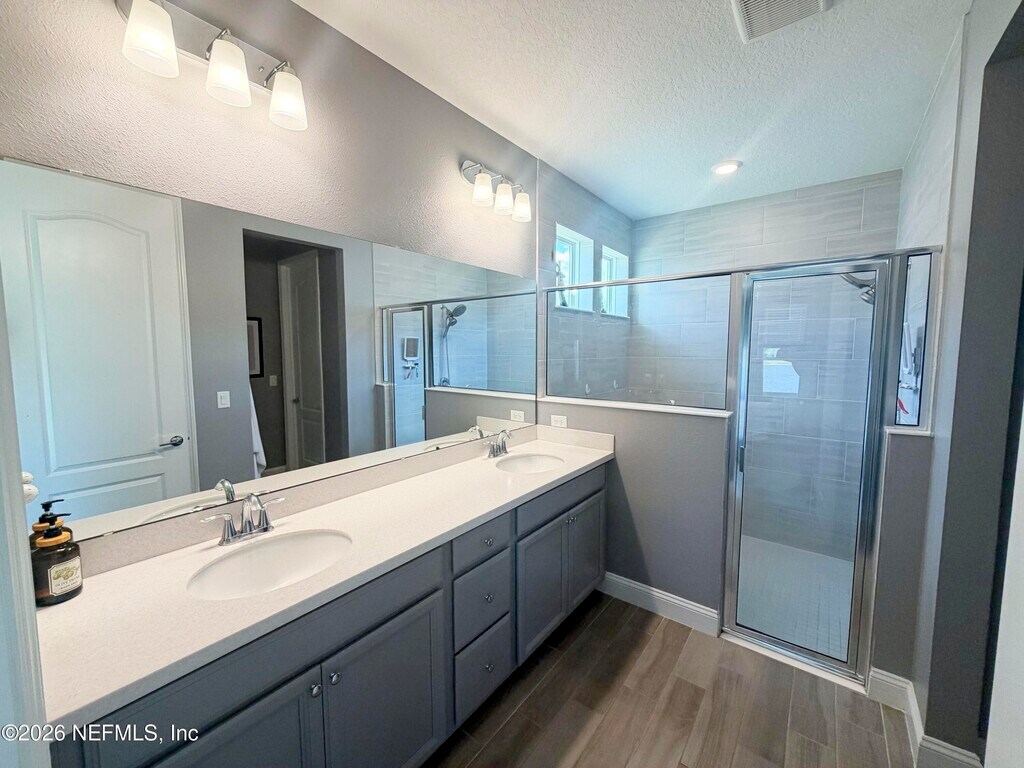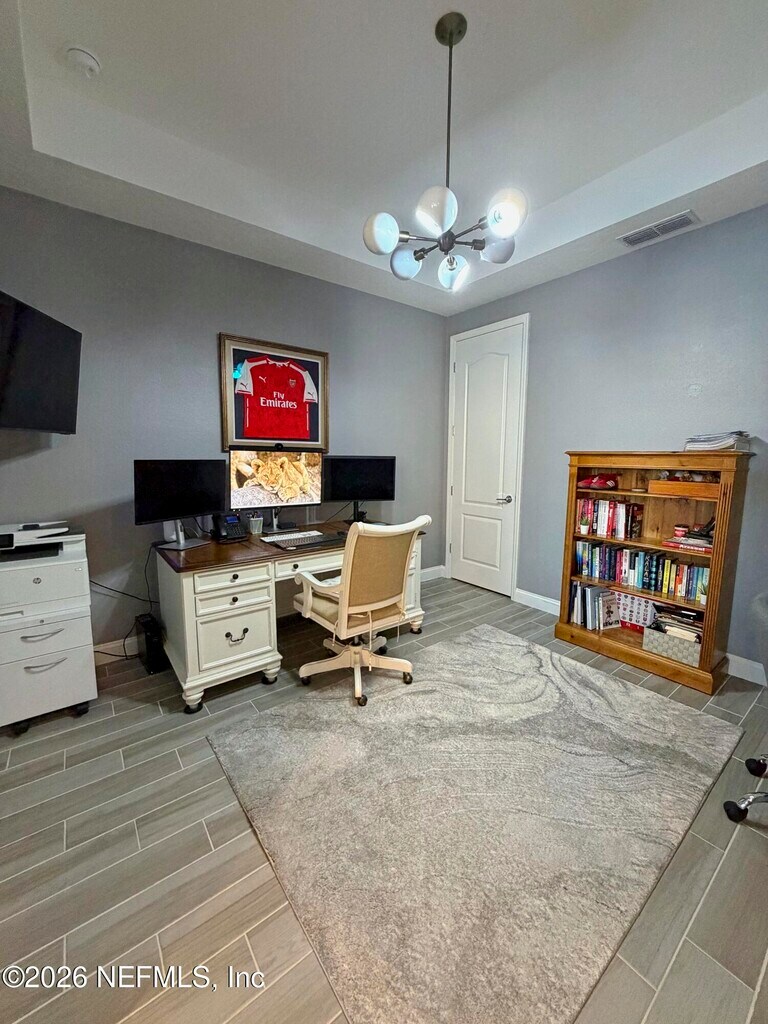 Stunning lakefront home featuring 4 bedrooms 3.5 bathrooms & over 3,000 square feet of living space,plus a 3-car garage,office & attached guest house. Located in the highly desirable gated & guarded Celestina community in St. Johns County,this home offers the perfect blend of luxury,flexibility,and modern convenience. Inside,you'll find an open-concept layout with wood-look tile flooring throughout the main living areas & a gourmet kitchen complete with quartz countertops,a large island,stainless steel appliances. The spacious primary suite features a large walk-in closet,dual vanities,& a stand-alone shower. The attached private suite is perfect for multi-generational living or guests,offering its own separate entrance,kitchen,bedroom,bathroom,& even a private garage. Step outside to a screened lanai overlooking a peaceful lake view. Enjoy resort-style amenities including a large pool,fitness center tennis/basketball courts & more. MLS# 2138253