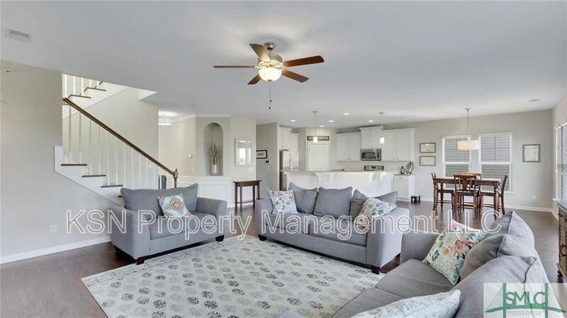 Welcome to 92 Crystal Lake in the Spring Lake subdivision in Pooler! This home features beautiful floors throughout. Downstairs there is a formal dining room with an arched entrance. Family room has a gas fireplace and is open to amazing natural sunlight! The gourmet kitchen is equipped with stainless steel appliances, a subway tiled backsplash and an extended island with a granite breakfast bar that can sit up to 6 people. Walk in pantry and garbage disposal. 1/2 bath down and huge walk in storage space under the stairs! Opened staircase leads upstairs with wood treads. Huge open loft area for a media room or family room. Gigantic master suite with 2 walk in closets. Master bath features double vanities, soaking tub and a separate shower. HVAC has 2 thermostats. Rear patio has an extended concrete slab and you have a lagoon view! Home has Spray foam insulation, and a gutter system and a termite bond. Privacy fence and a 2 car garage and top notch Community amenities! 20 minutes to Gulfstream. 12 minutes to Tanger Outlets. 30 minutes to Hyundai Metaplant. Move in special - 1/2 off 1st month's rent for a 12 month lease, 1st month free for a 24 month lease. SMLC photos used with permission Pet Details: Pets allowed with extra pet rent.