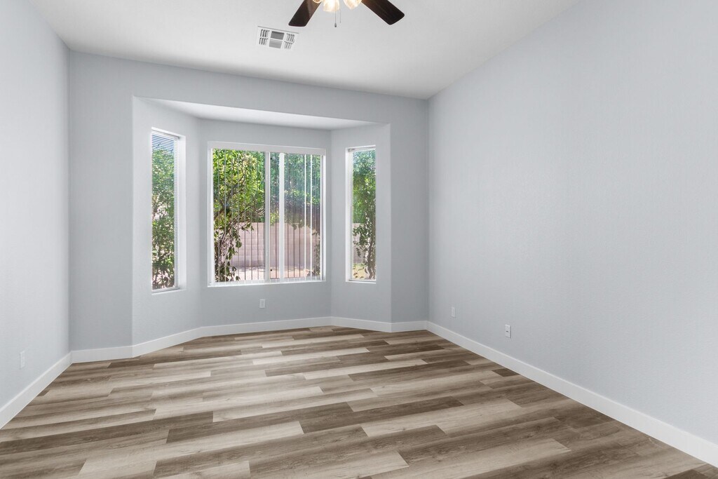 For Lease Updated $2,500 unfurnished 3 Bedrooms-2 Baths 2. 5 Car Garage 1,546 Sq. Ft. Gilbert, 858296 Home is located off Elliot and Gilbert Rd! Home is all on one level, with no stairs, in this home. The home is located within an HOA community. This home is in the heart of Gilbert, and it is within walking distance to all the restaurants, bars, entertainment area, and shopping in a lovely residential neighborhood, close to downtown Gilbert. Great Gilbert schools is a bonus This is a no-smoking home! We return all rental inquiry calls promptly. Call us today at or email Deborah Lafo, Property Manager at for an appointment to view this home before it is leased. It won't be on the market long. The home has been updated inside, and it has a brand new roof with new roof tiles, newer vinyl plank flooring throughout the hom,e and all newer 4.5" white baseboards. No carpet and no stairs anywhere in this home. New gas furnace & the kitchen has a gas range and a new AC condenser installed in 2023, newer roof and roof tiles, new irrigation system for the entire lawn installed in 2023-2024. The backyard is large and has real grass. Pets negotiable upon Owner approval. No aggressive breed dogs allowed. Home has an inside laundry room with hook-ups; bring your own washer and dryer. This home comes with a 2.5 attached garage, a large fenced backyard with a covered patio, and the yard has real grass & a full irrigation system throughout the yard for all to enjoy. The home has all-new interior paint, brand new kitchen stainless steel appliances, including a gas stove, built-in microwave, dishwasher, and a large fridge with icemaker and water on the door, new granite countertops, newly refinished white kitchen cabinets with black handles, and 1 kitchen island and 1 kitchen peninsula that opens to your dining area and family room. The kitchen has an eat-in area with bay windows and it would be a great place to sit and enjoy a cup of coffee before you start your day. The neighborhood is beautiful and very serene with a peaceful and quiet feel to it. The master bathroom & hall bathrooms have been updated. The master bathroom has dual sinks and a makeup area in the middle of the vanity for ladies to sit while doing your hair and makeup. Lots of natural light and windows, A private toilet room, a separate shower, a large Roman-style soaking tub & a walk-in closet. Owner prefers pets under 40 lbs, 2 pet maximum when full-grown and no aggressive breed dogs allowed. 2 pet maximum and pet rent of $25 per month plus a non-refundable pet fee applies. Ask us for more specifics on your particular pet if any are to live there. Deposit is equal to one month's rent. Application fee is $50 per adult. Pet rent and pet fee applies if you have pets. Ask PM for more details if you have pets prior to applying. No aggressive breed pets please, unless documented land legally approved ESA pets. We can't hold this home for longer than 14 days upon approved application and full deposit. All new vinyl plank flooring was installed in May 2023. No carpeting anywhere in the home. New 4.5" baseboards and so much more. Both bathrooms have been updated and the master bathroom has dual sinks with a makeup area in the middle, a separate shower & a large soaking garden tub. This home has a great Split Floorplan with the master bedroom on one side of the home and the other 2 bedrooms on separate side of the home for privacy. Home has vaulted ceilings and an extra-large garage with 2.5 spaces for your all your vehicles and toys. Tenant pays all utilities, which are SW Gas, APS for electric, City of Gilbert, Water & Trash & recycling. **Equal Housing Opportunity**