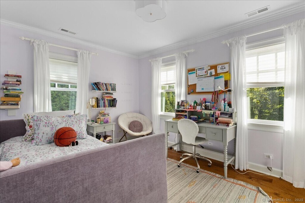 Call for Availability - This charming Colonial home in Hillcrest Park is nestled on a one-acre property beautifully blends elegance and comfort. Features 5 spacious bedrooms and 3.5 baths. Chef's kitchen is equipped with high-end appliances and an inviting eat-in area bathed in sunlight. French doors open to a serene patio and garden with a beautiful tree house, creating a seamless indoor-outdoor living experience Adjacent to the kitchen are a convenient mudroom and a large playroom. Main floor includes a formal living and dining, an office/library, and a family room. Upstairs, the primary suite offers dual walk-in closets, a steam shower, and a sunlit entry hallway plus three generously sized bedrooms. Third level provides a guest bedroom with a full bath and a gym/den. Two-car garage with plenty of storage. Close distance to schools and public transportation. MLS# 24129851