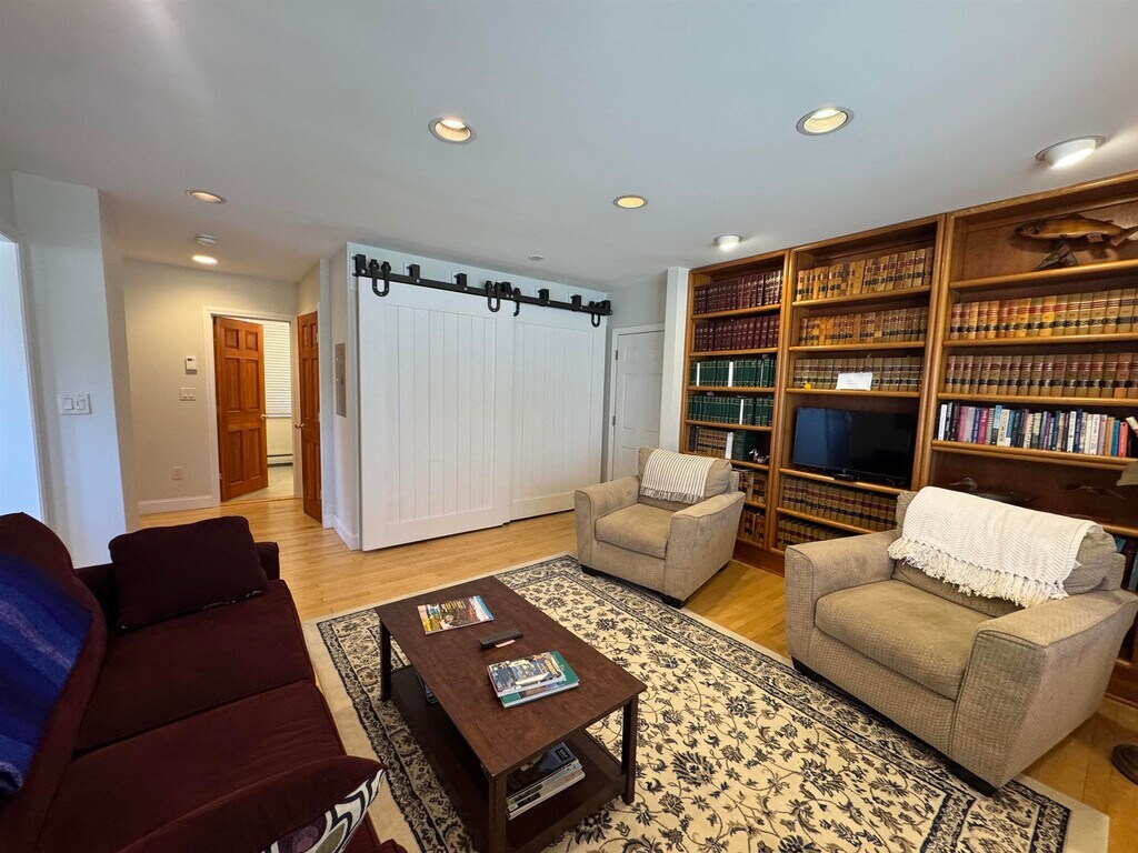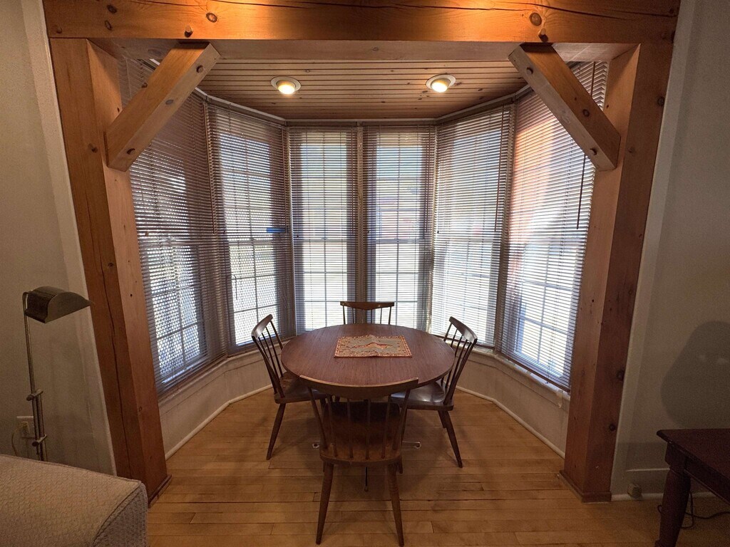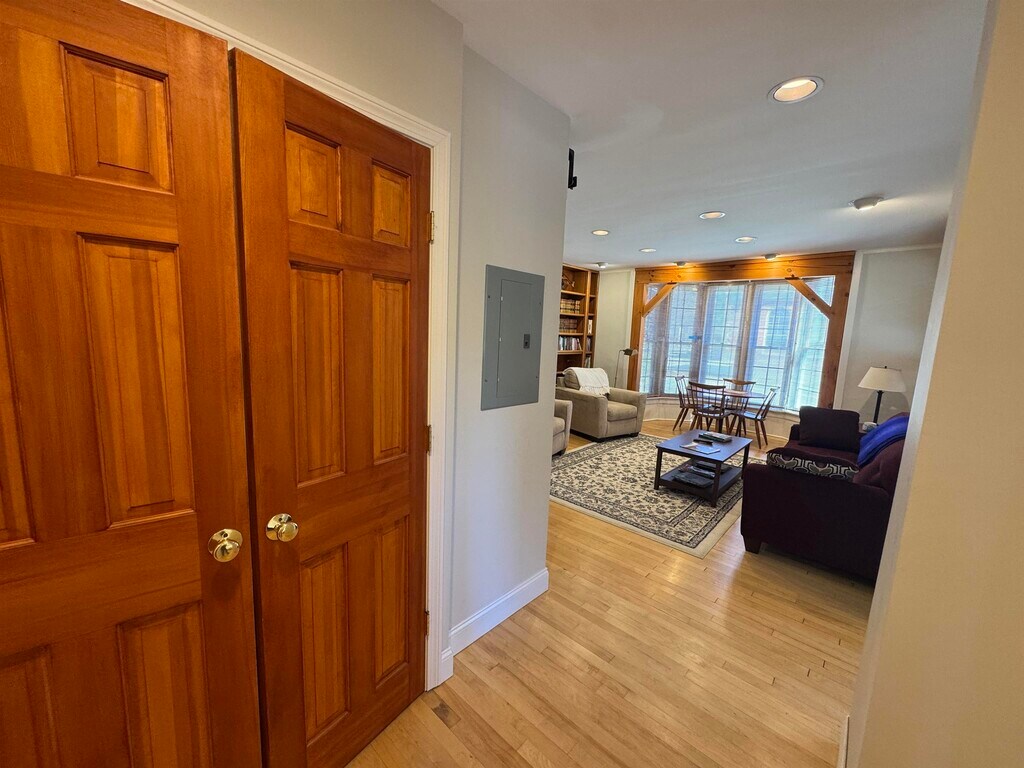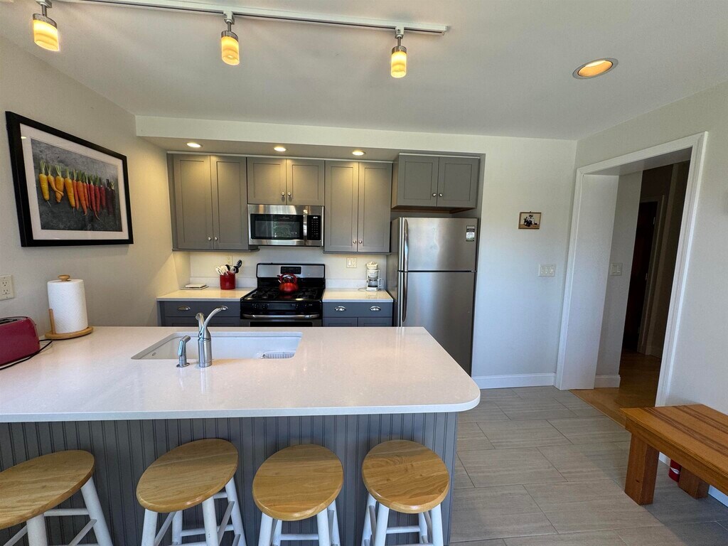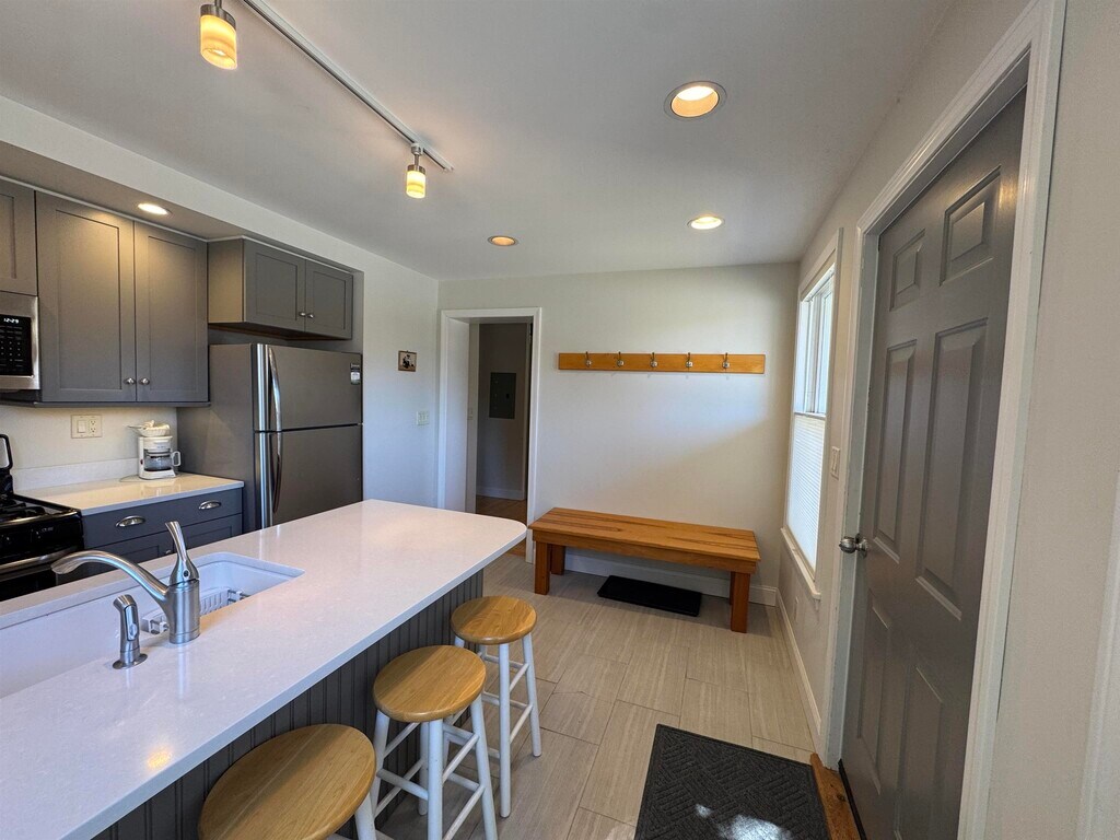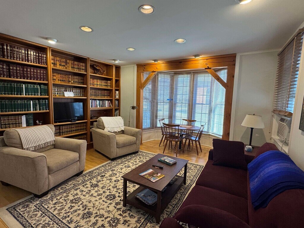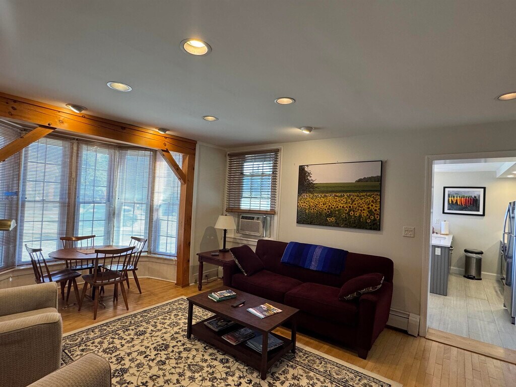 Live in the heart of Ludlow this season! This bright and beautifully updated one-bedroom apartment is the perfect winter rental retreat—just steps from downtown restaurants, cafés, and shops, and only minutes to Okemo Mountain for effortless ski days. The updated kitchen features modern gray cabinetry, stainless steel appliances, and a spacious breakfast island with seating for four—ideal for quick mornings before first chair or cozy après-ski cocktails. The warm and welcoming living area includes custom built-in bookshelves, natural wood accents, and a sunny bay-window dining nook that fills the space with light. The bedroom provides a peaceful retreat with hardwood floors, soft lighting, and relaxing views. A clean, modern full bath finishes the space.With walk-to-town convenience and easy access to the slopes, this seasonal rental offers comfort, location, and classic Vermont charm for an unforgettable Okemo winter. MLS# 5067563