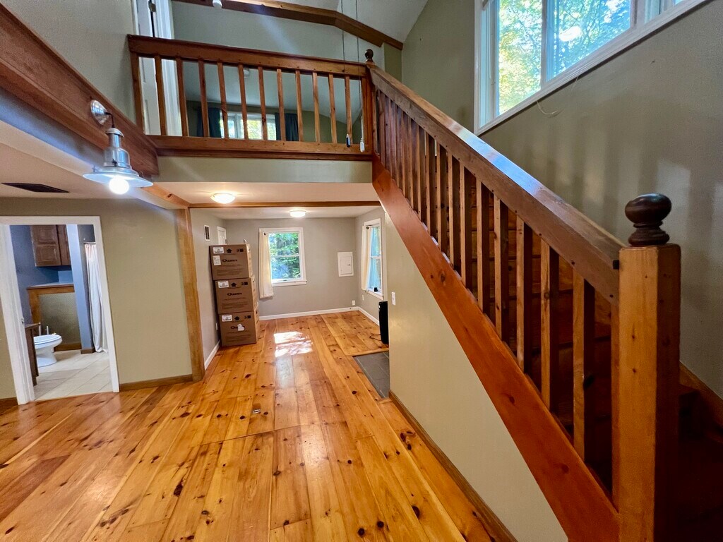 Lakeside property just listed! Nicely renovated, cozy, cottage-style house with a DROW(deeded right of way) to pristine and private Highland Lake. And just 15 minutes to Portland! Features wide pine floors and nice updates. Two bedrooms with an extra coat room/office/study/bdrm off the entry. Cathedral ceilings with open-concept kitchen, dining, living area. In award winning Falmouth: rated "the best place to live and learn". Washer/dryer included in bathroom. Wrap around deck, storage shed, off-street parking, private, wooded back yard, and a short path to the lake! Comes with a ROW to the shore of Highland Lake, with a new long dock for your boat, a grassy, flat, beach area, and a sandy bottom at the lake's edge. Enjoy sun bathing, relaxing, swimming, boating, dock access, water and beachfront, spectacular sunsets, loons, skating, ice fishing, all year long. NO SMOKING. NO PETS. One small pet may he considered. Available move-in date: Dec.1. One+ year minimum lease. Or winter rental and furnished can be an option. $2480+ K1oil heat + electricity. Owner pays water and sewer. First and security required. Call or text for more info, or to schedule a showing. 2zero7 eight99 seven641. Available Short term and furnished. No pets (ONE small pet MAY be considered)