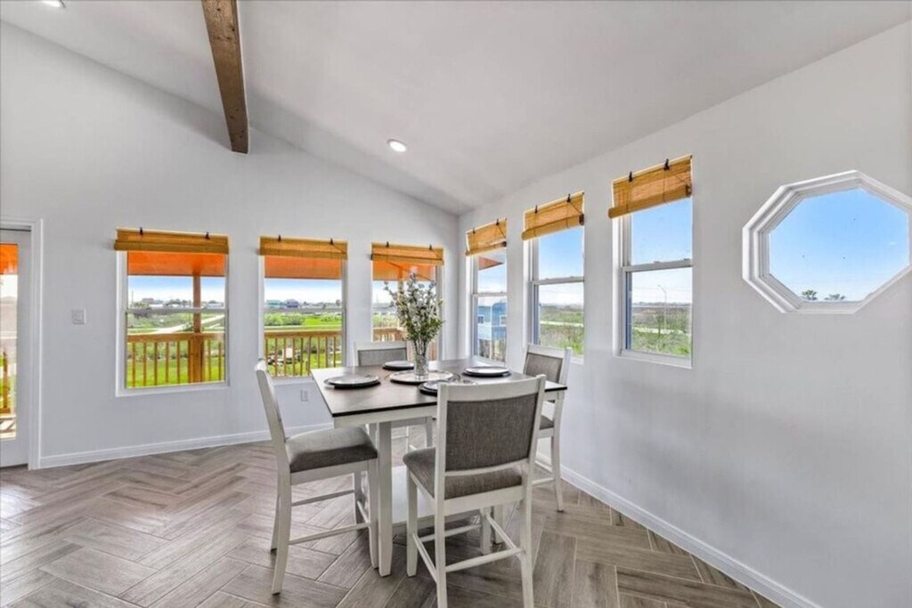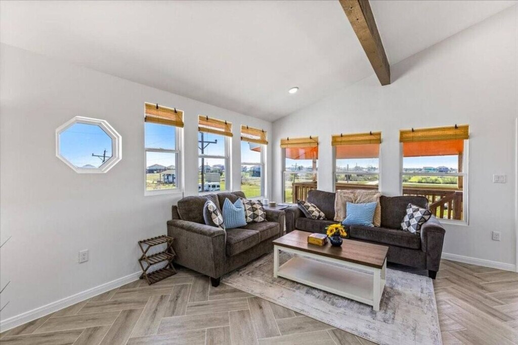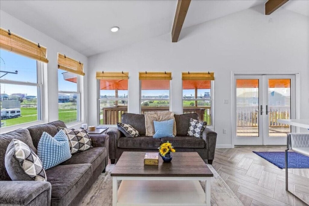 Feel at home in this triplex on Bolivar/Crystal Beach, offering six bedrooms and three bathrooms for up to 20 guests. This fully furnished property consists of three separate 2-bedroom/1-bath units under one roof. Each unit features a private kitchen, living room, and its own Wi-Fi network (approximately 25 Mbps per unit). You're just a short walk to the beach and close to the free Galveston–Port Bolivar ferry, which runs 24/7 and offers an 18-minute crossing. The maximum occupancy is 20. Any additional people must be pre-approved prior to final reservation, and only registered guests are allowed. Any visitors must be disclosed and approved. Do not leave food out that will attract pests. Keep the home reasonably clean during your stay. If there’s accidental damage, report it as soon as possible. Do not move any furniture (inside or outside), including chairs and picnic tables. If guests are asked to leave due to irresponsible behavior, no refund will be given for lost days. We are not responsible for accidents, injuries, or illness on the premises, or loss/damage of personal property. By booking, renters assume the risk arising from describing and using the premises. [SI]