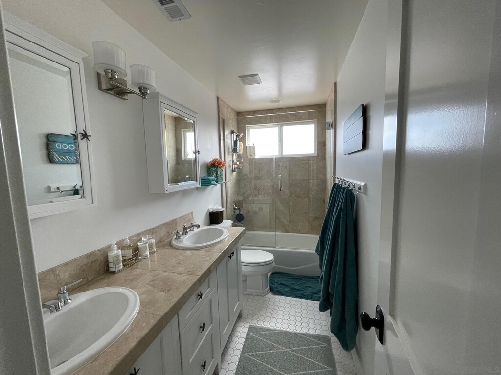 Welcome to this beautiful coastal home located in the heart of Coronado Village! Close to beaches,restaurants and shops. This bright and light 3 bedroom,2.5 bath home is a short term furnished vacation rental with open floor plan,gourmet kitchen,family room with fireplace,dining area opening to brick courtyard equipped with dining table and BBQ. Hardwood floors in living spaces. Upstairs loft area has queen sofa sleeper and deck with amazing views and outdoor fireplace. Rinse off after the beach using outdoor shower. Tandem garage. Air conditioned and ready for your beach vacation! This is short term rental with a 26 day minimum rental period. Pricing for summer ranges $15000 --$17,000 per month. Off season rate: $10,000. MLS# 230024212