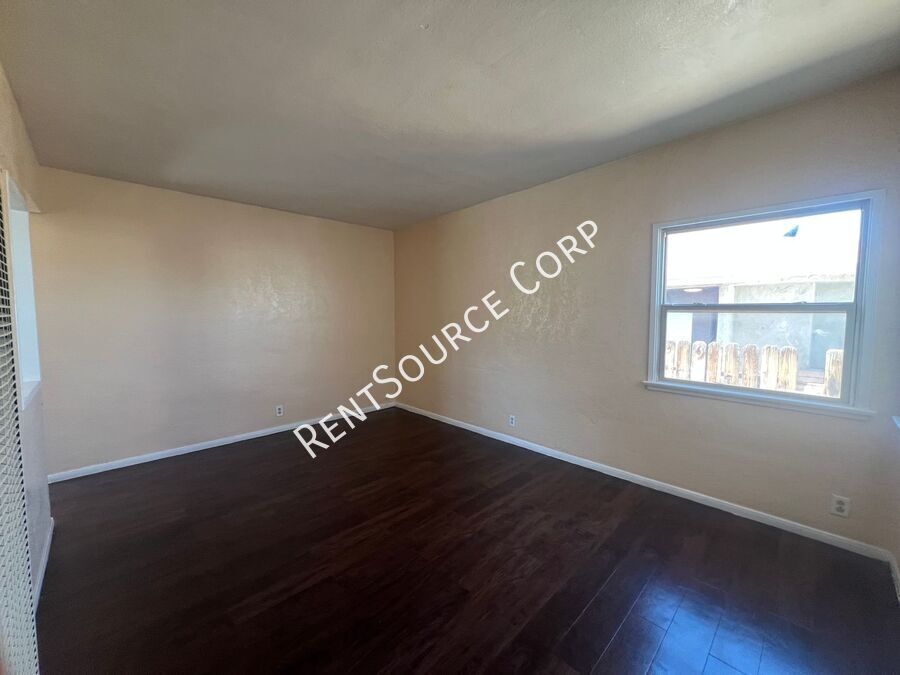 Welcome home to this charming 3-bedroom, 1-bathroom home located in the vibrant city of Barstow, CA. This property boasts a fresh coat of new paint and beautiful wood flooring throughout, creating a warm and inviting atmosphere. The white kitchen cabinetry in the galley kitchen adds a touch of elegance and sophistication. The dining area, complete with a ceiling fan, is perfect for hosting dinner parties or enjoying a casual meal. The front bedroom features a lovely bay window, allowing for plenty of natural light. The large fenced backyard offers ample space for outdoor activities or gardening. The house also includes a laundry room for your convenience. The property is equipped with a swamp cooler and wall heater to ensure your comfort all year round. The paved driveway provides off-street parking. Experience the perfect blend of comfort and convenience in this Barstow home. Small dogs are accepted with written consent. No Cats Please. Tenant to provide gas stove/oven Washer/Dryer Hookups. Available October 28th, 2025. Please visit