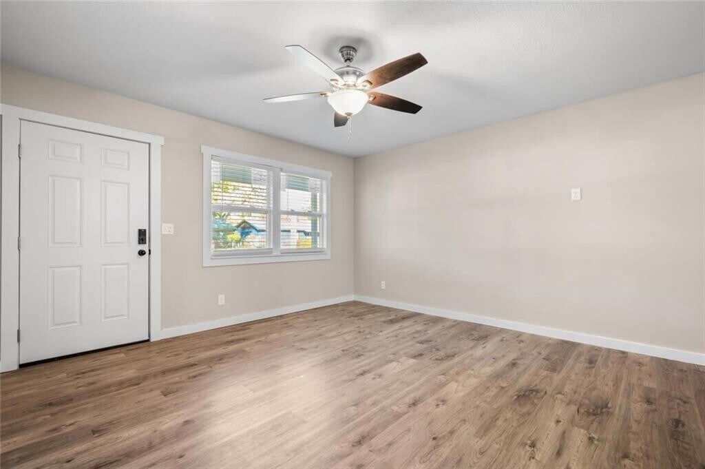 Stunning 4-bedroom, 2 full bathroom home for rent. Home is all on one level. Step inside to discover a spacious living room, perfect for relaxing or entertaining guests. The open kitchen features brand new appliances and countertops, creating a stylish and functional space for cooking and dining. New washer and dryer as well. The home boasts brand new floors throughout. Outside, you'll find a large fenced-in backyard, ideal for hosting outdoor gatherings. Additional outside storage provides plenty of space for tools and equipment. This home offers the perfect blend of convenience and comfort
