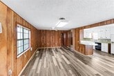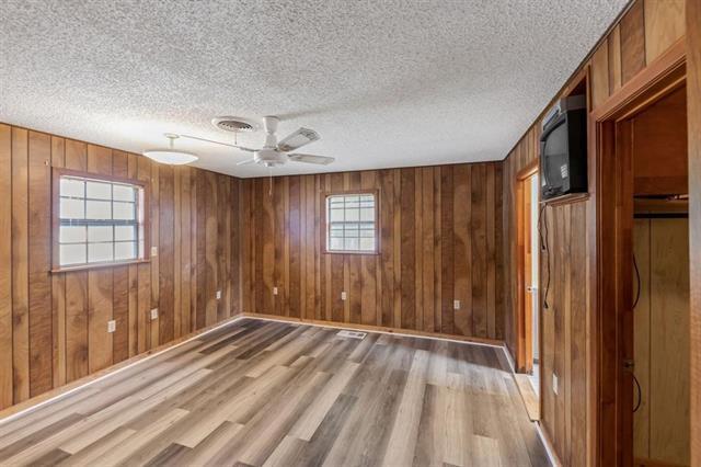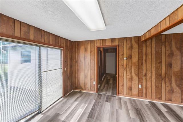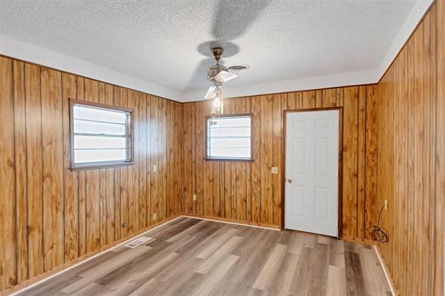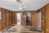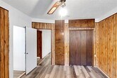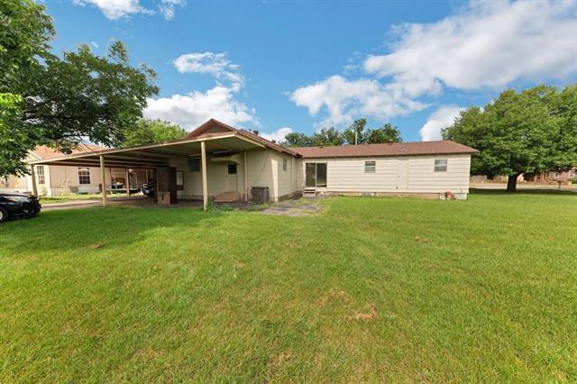 This three-bedroom, two-bathroom property features an open living area, a dining area, and a spacious kitchen. The home has a split bedroom arrangement with the master bedroom and bath on the north side, and the two additional bedrooms and second bathroom on the south side. The south end also includes a large laundry room with storage and a sink, and a versatile space that could be used as a fourth bedroom, office, or den. Exterior amenities include covered parking, a large lot, and a structure that could be renovated into a shop, garage, or additional living space.