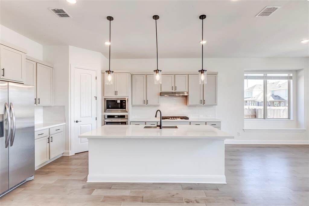 Available October 4, 2025 – $3,600/month – Stunning New 5 Bed, 4 Bath Home in Hawkes Landing, Leander! Be the first to lease this beautifully crafted new construction home by Brightland Homes, offering 3,050 sq ft of modern living in the desirable Hawkes Landing community. This spacious 5-bedroom, 4-bath residence features a versatile floor plan with two bedrooms on the main level, perfect for guests or multigenerational living. Enjoy designer touches throughout, gourmet kitchen with stainless steel appliances, gas cooktop, built-in oven, large kitchen island, and stylish flooring. The open-concept layout includes multiple living areas, a covered patio, and a 3-car garage with extra parking. Located in Leander ISD near Bagdad Elementary, Leander Middle, and Glenn High School, with quick access to shopping, dining, and major roadways. Additional features include: In-ground sprinkler system, R O Filter System, Water Softener, Full appliance package including washer/dryer & refrigerator, Primary bedroom on main with walk-in closet, Laundry room on main level No pets allowed, Tenant pays all utilities, Online application required.