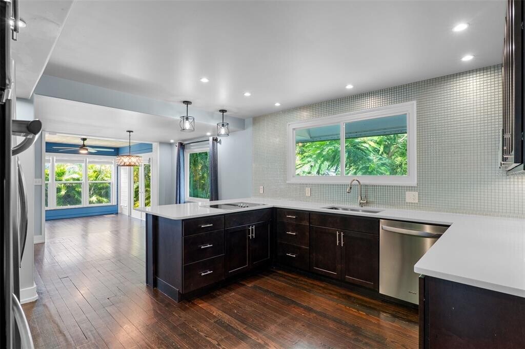 Tiffany PantozziStep into timeless style with this beautifully maintained mid-century modern home sitting on a large 0.29-acre lot in the heart of Delaney Park, one of downtown Orlando s most sought-after neighborhoods, and just stone s throw from the 903 Mills Market and right around the corner from Lake Davis, where you can enjoy walking paths and views of the downtown Orlando skyline. Built in the 1950s, this home embraces the clean lines, thoughtful architecture, and organic flow that define the era, while offering modern updates and comforts you'd expect today. From the moment you pull into the half-circle driveway, the home draws you in with its understated curb appeal. Inside, the open living and dining room area, featuring rich wood floors and exposed beam ceilings, welcomes you with sunlight streaming through the updated windows. The kitchen blends classic and contemporary with quartz countertops, a farm sink, and custom espresso cabinetry. It is equipped with stainless steel appliances including a Frigidaire double oven and refrigerator, a cooktop, and a dishwasher. Just around the corner, a first-floor bedroom and updated full bath offer flexibility for guests, office, or multigenerational living. Right off the kitchen, you'll find access to the oversized two-car garage, complete with space for laundry and a built-in mudroom area. Head upstairs and discover the primary suite, nestled quietly in the northeast corner. It features custom built-in closet features and a spa-inspired bathroom with a rain shower and beautifully selected modern finishes, including Designer-grade Oceana Azul Tile. Down the hall, where the wall displays the original blueprints of the home, two additional bedrooms share another updated full bath, each room thoughtfully designed with comfort and style in mind. Step out onto the deck-style lanai and into your own private garden retreat hidden in the middle of the city. The large backyard is filled with mature trees, tropical landscaping, and plenty of room to play, relax, or entertain. It s private, peaceful, and feels like a secret garden in the middle of the city. A shed out back adds practical storage without interrupting the natural beauty of the space. Recent upgrades include a new AC system (2022), updated electric and plumbing systems in recent years, and new windows (2018). With quick access to 408, I-4, and downtown s thriving food and business scene, this home offers location and style. Homes like this, where architectural charm, updates, and a truly special yard come together, rarely come to market. Schedule your private showing today and see why this Delaney Park home is something truly special.