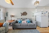 Discover your perfect getaway at The Cove A 116, a charming condo located in the heart of beautiful Gulf Shores, Alabama. This cozy retreat is ideal for couples or small families looking to enjoy a relaxing beach vacation with all the comforts of home. Step inside and discover a spacious, open-concept living area featuring cozy seating and a large flat-screen TV, perfect for relaxing after a sun-filled day at the beach. The modern, fully equipped kitchen flows seamlessly into the dining area, offering everything you need to prepare home-cooked meals or quick bites. Designed with you in mind, this condo features a spacious, open-concept living area with cozy seating and a large flat-screen TV, perfect for unwinding after a day at the beach. The modern, fully equipped kitchen flows seamlessly into the dining area, providing everything you need to prepare home-cooked meals or quick snacks. The condo offers assigned parking for one vehicle, with overflow and guest parking available on a first-come, first-served basis. With its prime location, you're just minutes from Gulf Shores' top attractions, restaurants, and shops. Whether you're looking for a tranquil getaway or an action-packed vacation, The Cove A 116 is the perfect base for an unforgettable Gulf Shores experience. Local attractions include Gulf Shores Public Beach, just 0.5 miles away, perfect for swimming and sunbathing, and the Gulf State Park Pier, 1.2 miles away, ideal for fishing and strolling. Waterville USA, The Hangout, and the Alabama Gulf Coast Zoo are also nearby, offering a variety of entertainment options for families and groups. The condominium association has a strict no-pets policy, including emotional support animals, with only ADA-compliant service dogs allowed according to Federal Law. No smoking is allowed in the unit or on the balcony, with violations incurring a $250 fine plus cleaning costs. Quiet hours are observed from 10 pm to 8 am, with violators charged a $200 fine. No parties or events are allowed, with violators facing a $500 fine. The pool is currently under renovation and will remain closed until further notice. For same-day late check-ins, host approval is required before booking. A state identification card or driver's license copy will be requested upon booking, and travelers must be at least 22 years old to make a reservation. The minimum age requirement for check-in from March 1st to May 1st is 25 years of age. A security camera is installed outside for safety, but there are no cameras inside the property. Beach towels are not provided, and the property is not responsible for accidents, injuries, or stolen or damaged items on the premises.