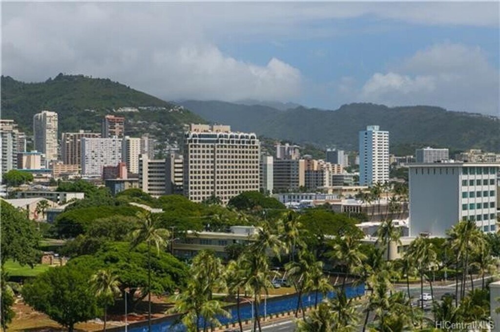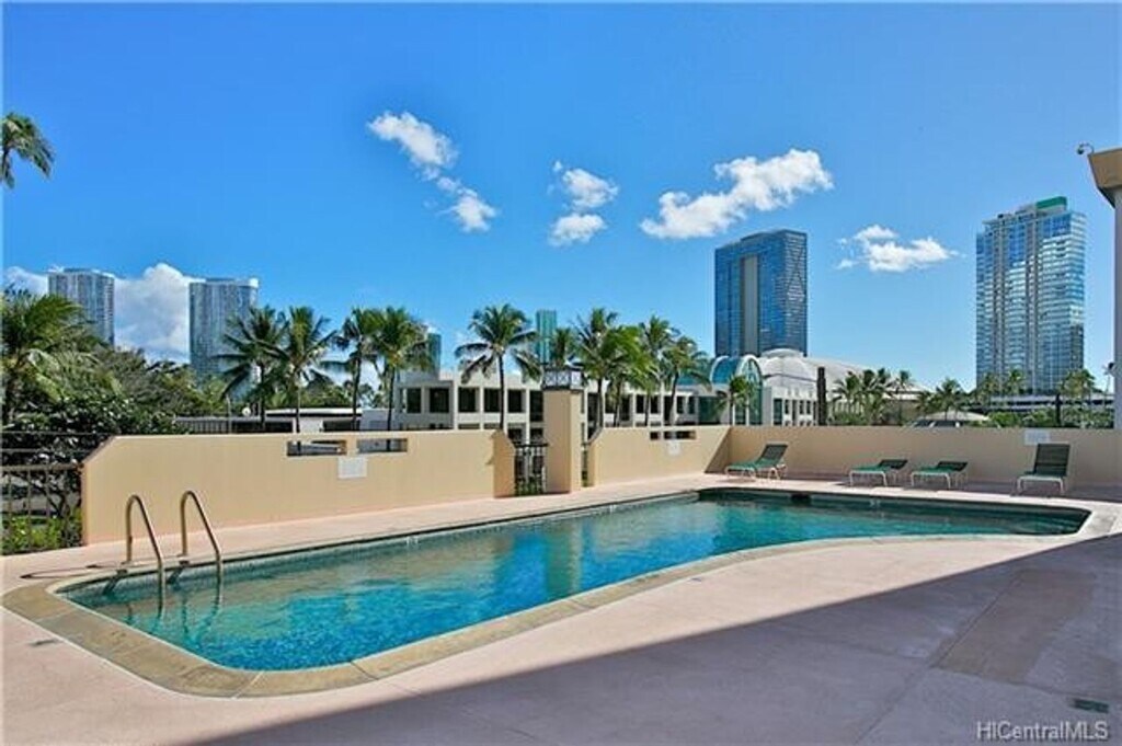 GREAT VIEW over looking Kakaako, Blaisdell, and Ward Avenue! This 2 bedroom, 2 bath unit is located on Ward Avenue on the 7th floor. Secure building with pool, and one covered parking stall, water/sewer included with monthly rent. Washer dryer in unit! 12 month lease desired. Great location! Close to restaurants, bus route, Blaisdell, Entertainment and downtown Kakaako! Also close to Straub Hospital and McKinley High School! No pets, no smoking. New carpets! Please call Dower Realty, Inc. to schedule showing appointment.