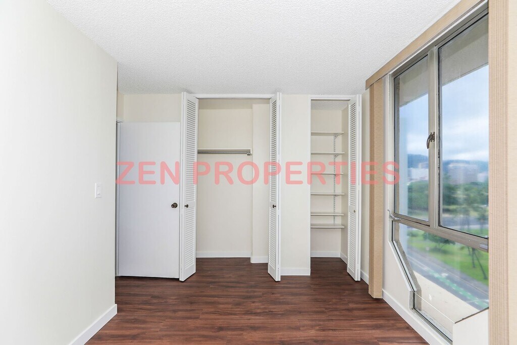 Newly renovated 2 bedroom, 2 bath unit at Royal Court with 1 covered parking stall. Newly painted, with new flooring and new appliances (refrigerator, dishwasher, range/oven, microwave hood, and washer/dryer). A/Cs. 948 sq ft interior + 83 sq ft lanai. Pool. Conveniently located across street from Blaisdell Concert Hall, near Thomas Square, Honolulu Museum of Art, Straub Hospital, Queens Medical Center. Near bus line. Rent includes water/sewer only. Tenant pays electric, cable, internet, and phone service. Security deposit is one month's rent. Long term ONLY. 1 year minimum. No subleasing. No pets. No smoking. No vaping. RENTER'S INSURANCE is required. Proof of coverage must be provided prior to move in. The first month's rent will be pro-rated from the day you move in. Thereafter, all rents are due the 1st of each month. Your security deposit and 1st month's rent payment is due in full prior to check in and must be made online through our Tenant Portal. 3D FLOOR PLAN: (To navigate: tap or click on a room to zoom in, and swipe, or use your mouse or arrow keys.) SLIDE SHOW: Prior to scheduling an in person showing, please review all provided information including all photos and virtual tours at There is a non-refundable application fee. All adults who will be residing in the unit must submit an application. Any Co-signor or Guarantor must submit an application. A photo id must also be provided as proof of identification. When contacting us please specify the rental unit in which you're interested. Zen Properties, Inc. RB-17955