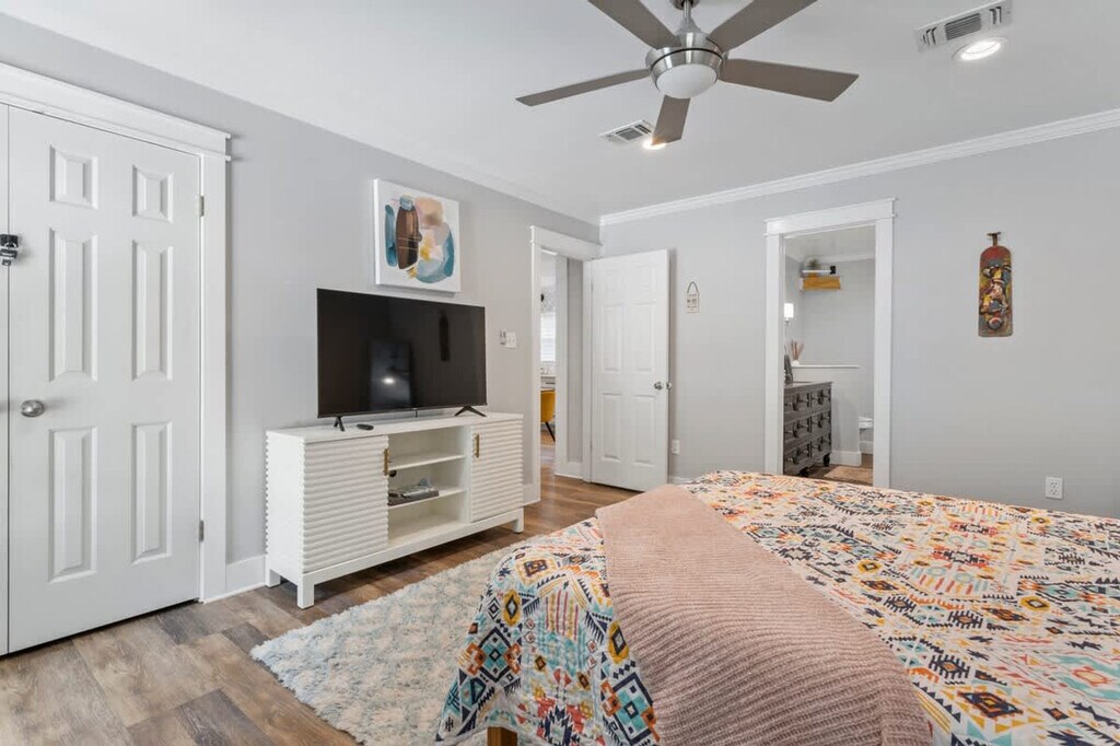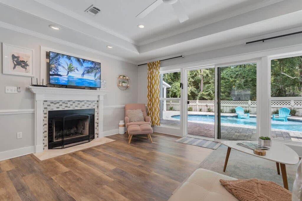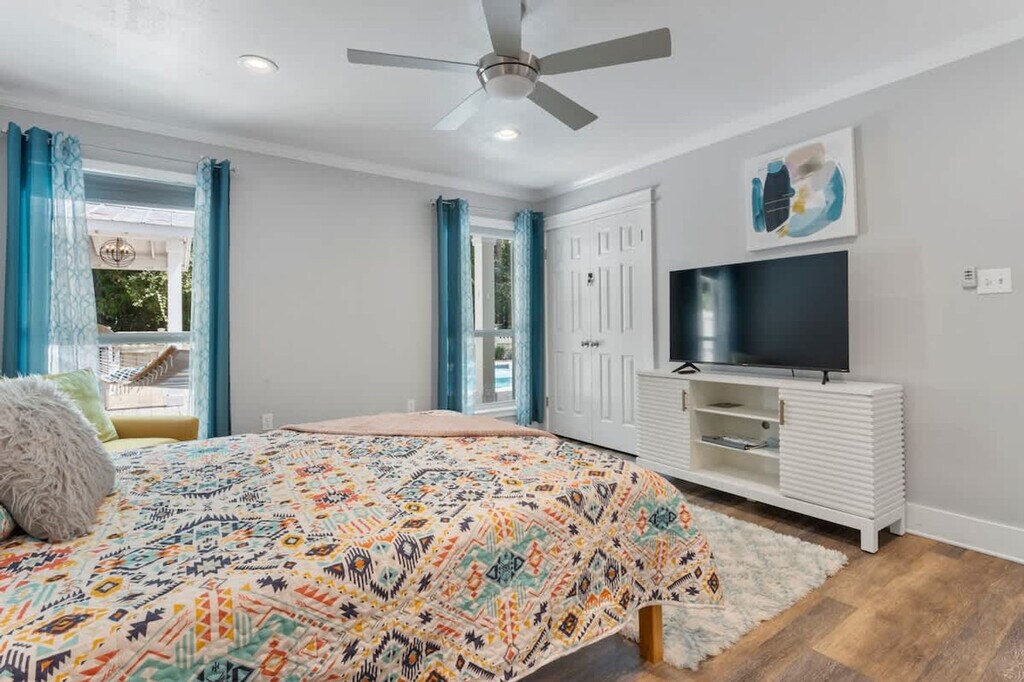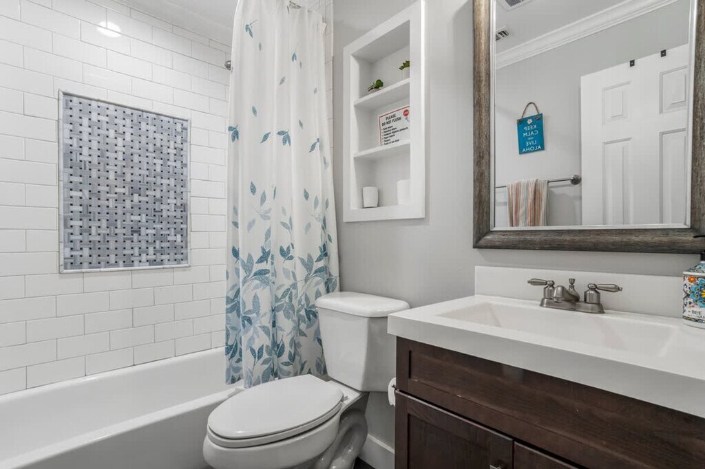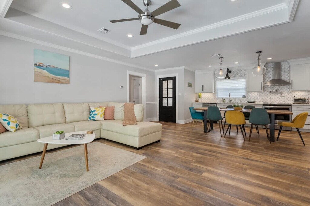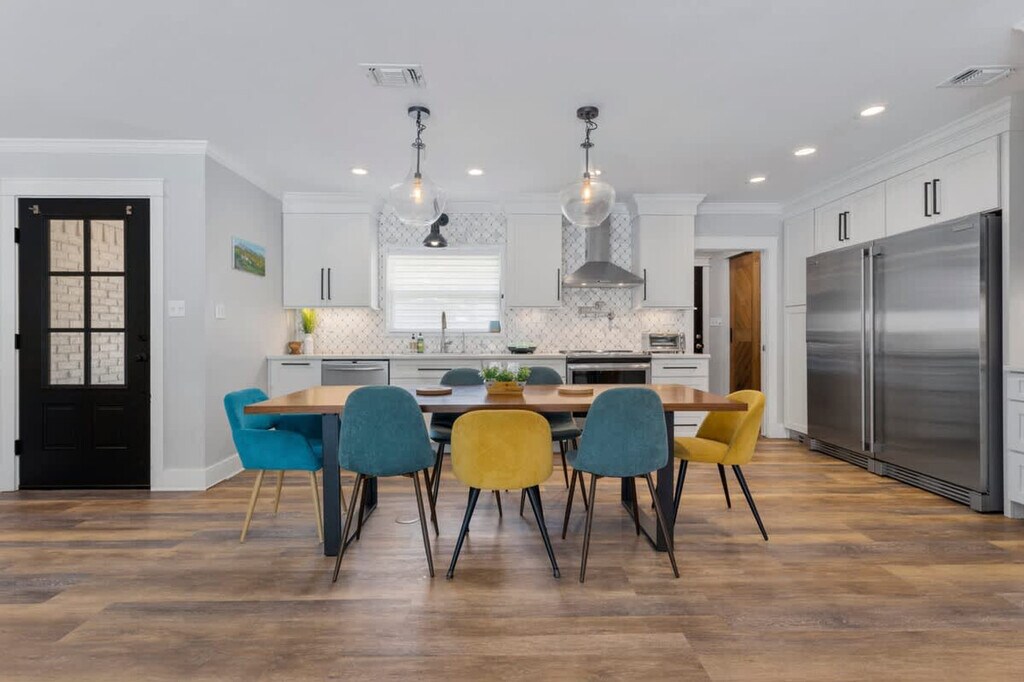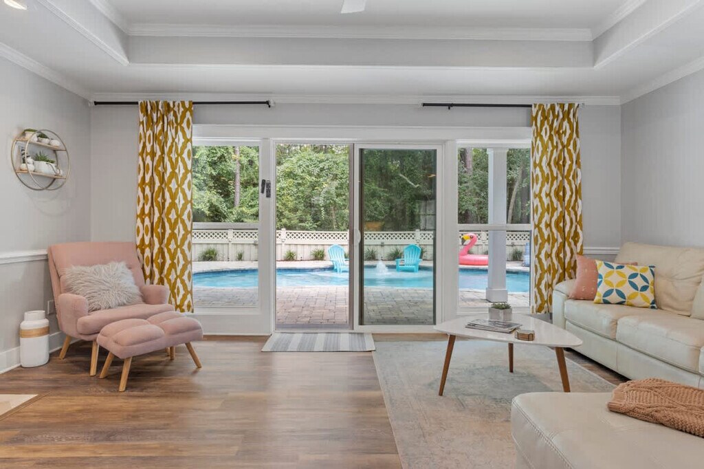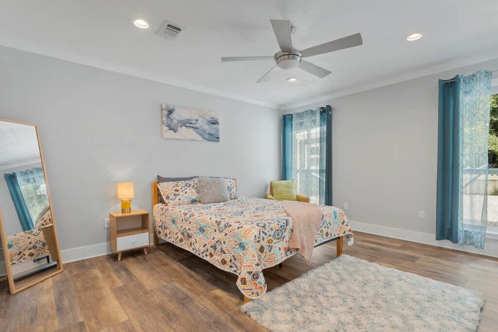 Feel at home in this meticulously maintained 3-bedroom property, located not far from historic and artsy downtown Ocean Springs and the beautiful beaches of the Mississippi Gulf Coast. The Luxury Bayou Experience provides all the comforts you need, featuring a large open kitchen with stainless steel appliances including an industrial double-sized stainless steel refrigerator, oven, and dishwasher. The cabinets are filled with virtually everything you will need to prepare your own meals. A family of eight can be seated at the dining table overlooking the pool. The living room provides a comfortable place to lounge in front of the large flat-screen smart TV and there is also a 200-square-foot pool house with an air mattress if needing additional sleeping space. Out back in the fully fenced-in yard, you will find an in-the-ground pool and an outdoor kitchen. Pets are allowed for a non-refundable pet fee of $200. The pool can be heated for a fee, and it must be paid a minimum of 48 hours prior to arrival. While at the Luxury Bayou Experience you’ll feel completely at home, you'll also find yourself nearby the quaint historic town of Ocean Springs. It has many great restaurants, museums, art galleries, sidewalk cafes, antique stores, and unique gift shops for you to enjoy. The Bayou bar and grill is half a mile away with fantastic food, waterfront views and live music. Lake Mars pier is great for fishing and is also located half a mile away. The driveway is big enough for three cars and the road to the right of the house can accommodate additional parking for a boat or RV if needed. Seven people is the most that can be on the property. A waiver will need to be electronically signed for all people on the property. The guest limit will be strictly enforced. No events or parties of any kind are allowed. Exterior security cameras have been installed for the safety of both guests and property outside of the home in the front and back that record audio and video. The fireplace is not to be used. Use the pool, bikes, and scooters at your own risk. The pet fee is for up to two dogs less than 50 pounds. Inquire if heavier than 50 pounds. A liability waiver due to the pool must be electronically signed before the access code is given. Not doing so before arrival will cause delays checking in. [SI]