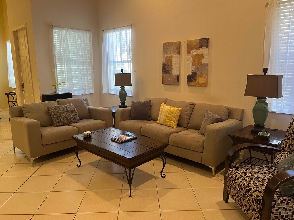 One-story fully furnished,turnkey townhome in Castle Pines with a 1-car garage. Extra light and bright spacious end unit with 3 bedrooms and 2 baths. Volume ceilings,great kitchen,screened lanai with views of the water and lush greenery. Plenty of guest parking nearby; close to community mailboxes. Amenities include a refreshing pool and spa. Longer-term tenants have access to PGA's Island Club amenities,including a fitness center,tennis and pickleball courts,and clubhouse. PGA Golf Club offers 54 holes of golf with options for greens fee play and memberships. Available for short-term lease (minimum 3 months,higher monthly rate) or annual lease; call for details. MLS ID R11167301