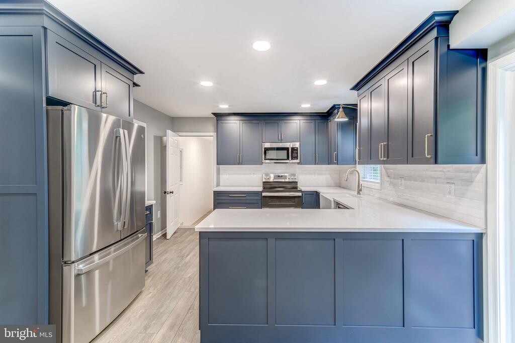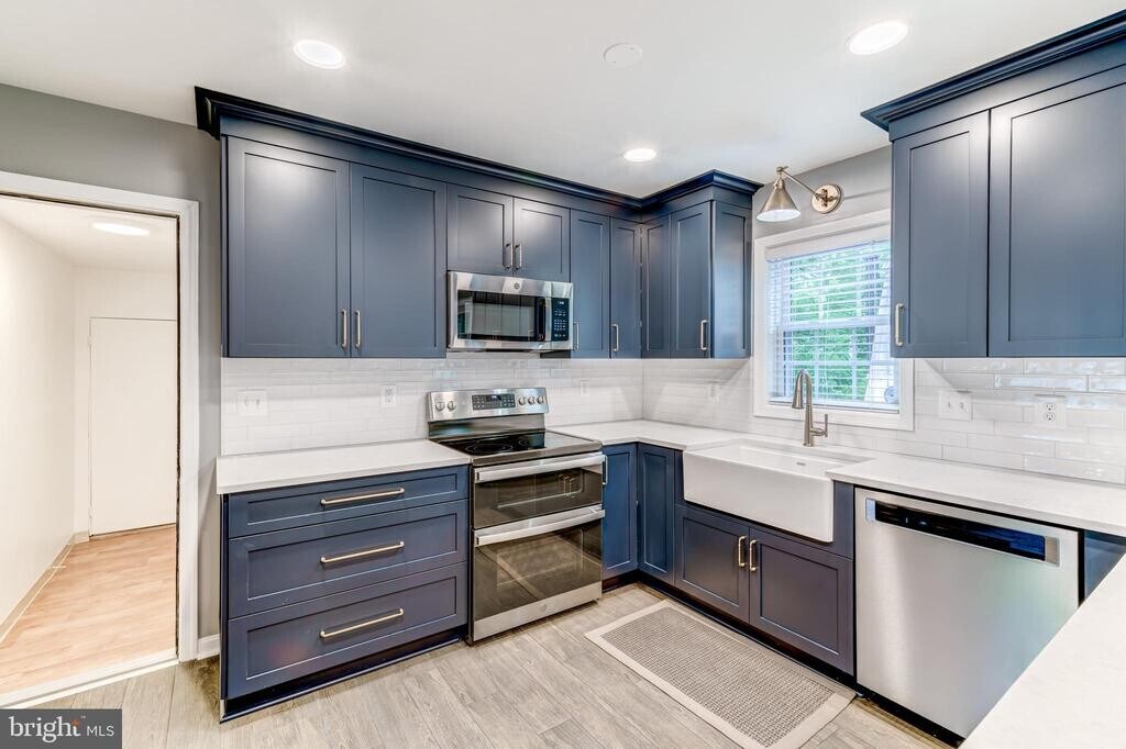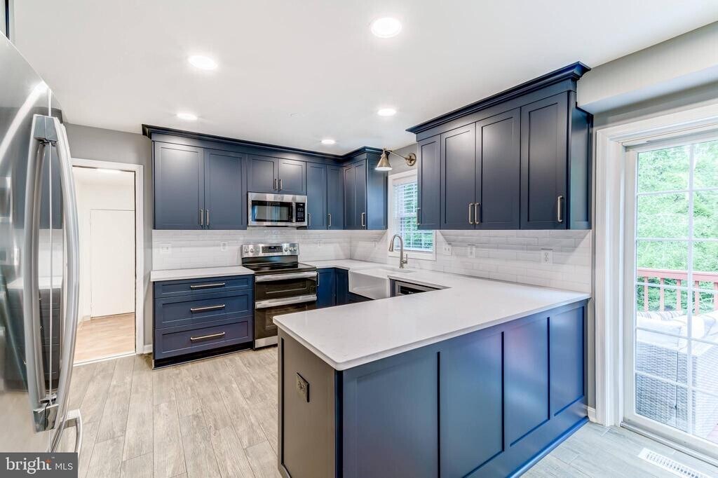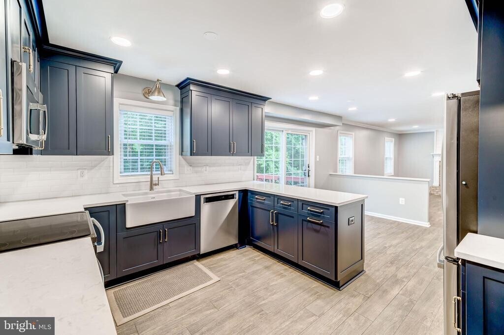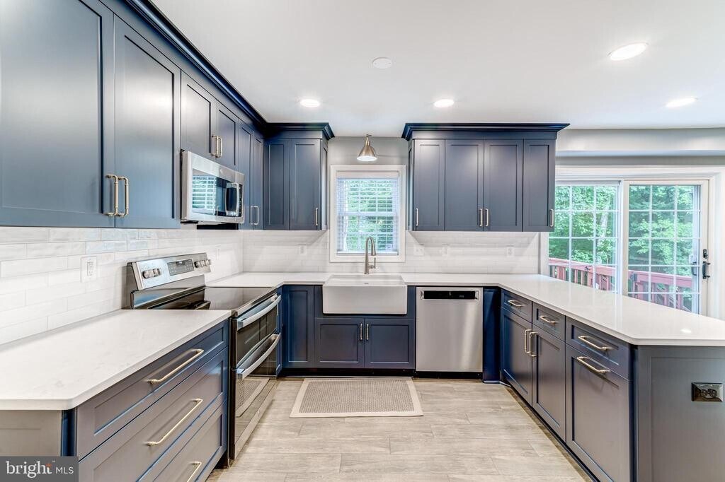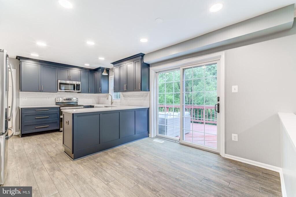Rentals like this in this neighborhood with these schools and commuting options do not come on the market often! Do not miss this gorgeous, well maintained and upgraded colonial on a cul-de-sac, backing to woods in the highly sought after Southport community in Burke. Step inside and be immediately impressed by the sunny windows, wood-tile floors, neutral grey paint and GORGEOUS Nicely Done" custom kitchen featuring blue cabinets, quartz countertops, stainless steel appliances, an apron farm sink and more. With a convenient breakfast area that opens to an oversized deck, entertaining and everyday living is a breeze. Also on the main level you'll find a convenient half bath, a formal dining room, a formal living room and a family room centered around a cozy wood burning fireplace. Off the kitchen is a convenient breeze-way/storage area with access to the oversized two car garage. Upstairs features 4 generous sized bedrooms and 2 bathrooms. The lower level has a 4th bedroom and adjoining bathroom with an oversized soaking jacuzzi tub (think relaxing ski lodge), open rec room and pleasantly upgraded laundry space. Wonderful community with easy access to the 495/Rolling Road Park-n-ride/VRE/Pentagon bus, etc. Ravensworth/Lake Braddock pyramid. Available for rent on November 15th. Pet friendly."