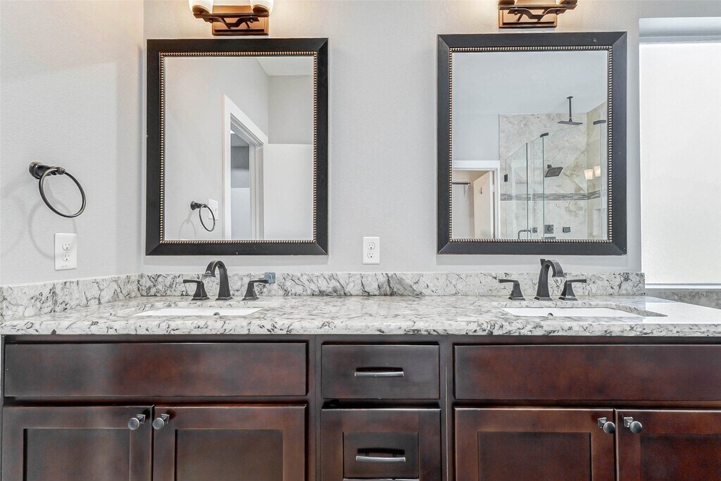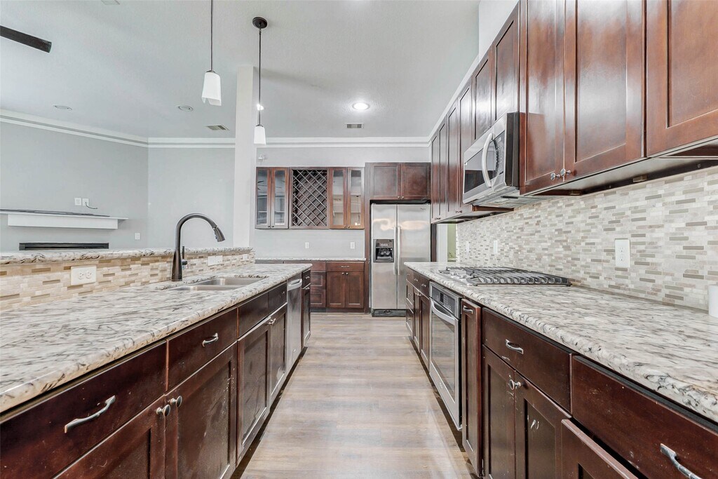 Welcome to 9202 Clayberry St,a stunning 3-bedroom,2.5-bathroom home. The first floor features a light-filled living area with wood-look flooring and a cozy fireplace. Entertain with ease in the adjacent dining room and open kitchen,complete with abundant cabinetry,granite countertops,stainless steel appliances,a gas cooktop,and a spacious island with a double-basin sink and breakfast bar. Pendant lighting adds elegance above the island,while a dry bar with glass-front cabinets and wine storage provides added convenience. Upstairs,the generously sized primary bedroom boasts a tray ceiling,recessed lighting,and ample windows. The spa-like ensuite features dual sinks,granite counters,a soaking tub beneath a rain-glass window,and a walk-in shower. Two additional bedrooms offer plush carpeting,ceiling fans,and bright windows,accompanied by a full guest bathroom with dual sinks and a tub/shower combination. Step outside to enjoy a covered patio overlooking the backyard! MLS# 57551984