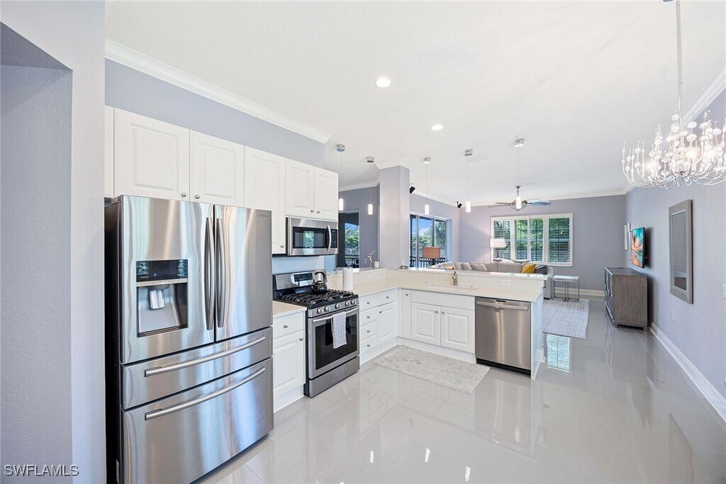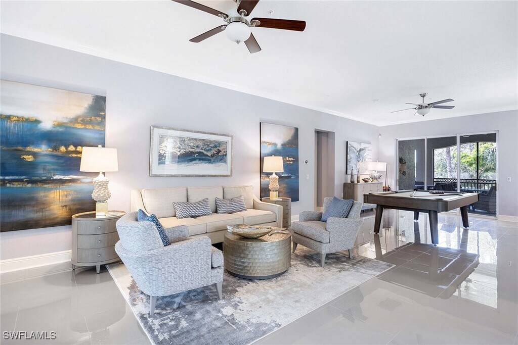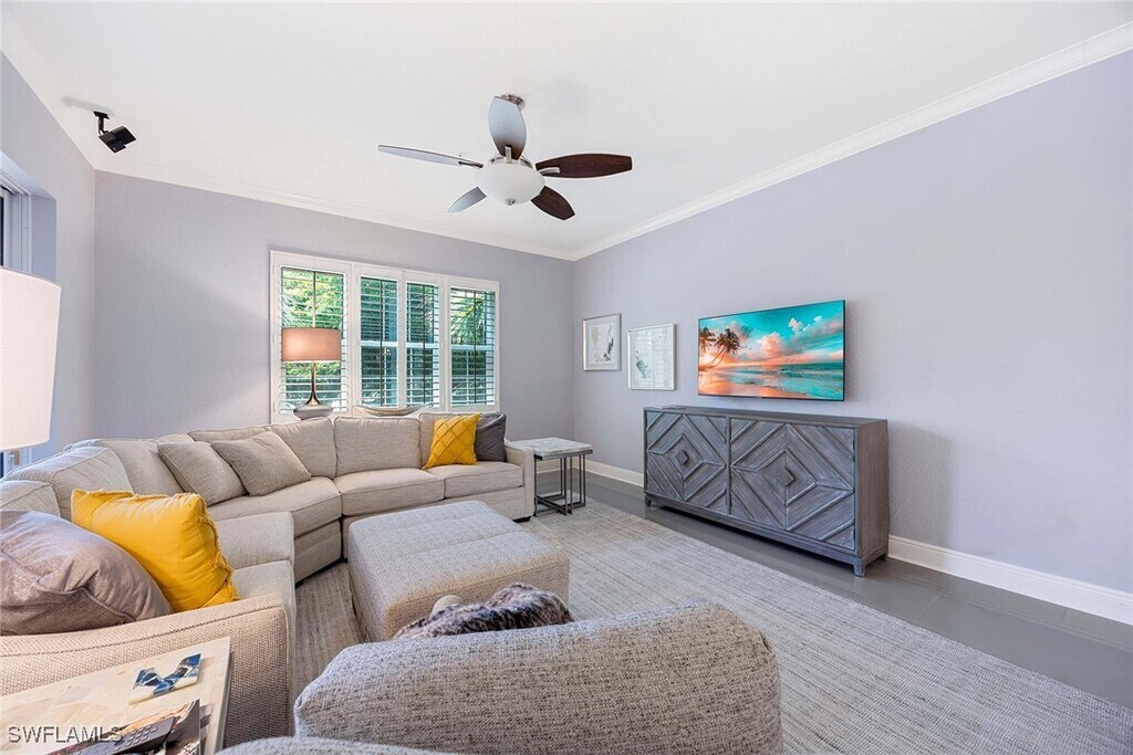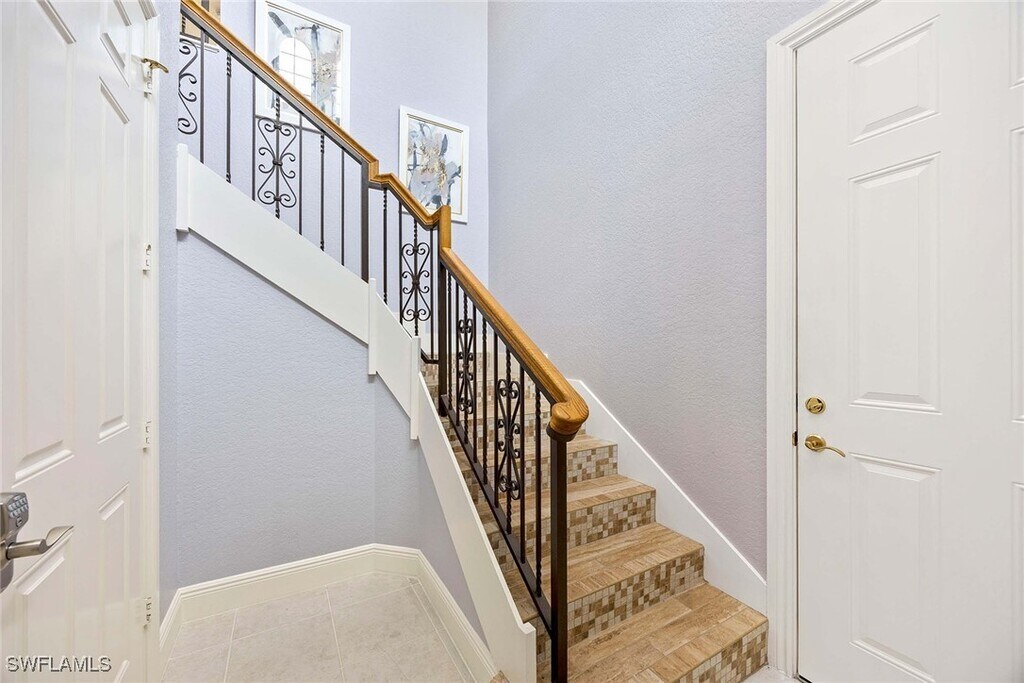 Experience the perfect vacation retreat in the prestigious Varenna/Laguna Community,a luxurious resort-style enclave nestled within the coveted Fiddler's Creek! This elegantly decorated home features three spacious bedrooms,three full bathrooms,and a versatile den,complemented by a private elevator and an attached garage for added convenience and comfort. The gourmet kitchen features stainless steel appliances and white countertops,inspiring culinary delights. Step outside to the oversized outdoor lanai,where stunning sunset and water views create an idyllic backdrop for relaxation and entertaining. Whether lounging at the village pool directly across the street,relaxing on the private and sizable lanai with gorgeous lake views,coming back from a day of Florida fun,or entertaining friends and family members,this wonderfully configured,wide-open floor plan can handle it all. Enjoy exclusive access to the extraordinary 54,000-square-foot clubhouse,showcasing lagoon-style pools,exhilarating water slides,poolside dining,a soothing spa,a state-of-the-art fitness center,steam room,sauna,tennis and pickleball courts,bocce,and a calendar packed with social activities. Explore miles of scenic walking,running,and biking trails,perfect for outdoor enthusiasts. Ideally situated halfway between the renowned Fifth Avenue of Naples and the pristine beaches of Marco Island,this charming vacation home provides the perfect base to explore the Gulf Coast’s best attractions. Close to fine dining,shopping,marinas,and more,it offers the ultimate blend of luxury,convenience,and leisure for an unforgettable getaway.