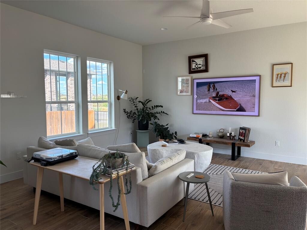 Welcome home, where comfort, personality, and playful charm come together in one perfect package! With nearly 3,000 square feet of thoughtfully designed living space, this 3-bedroom, 3.5-bath beauty is as stylish as it is functional. Step inside and you’ll immediately notice the open floor plan, bright, airy, and ready for everything from cozy nights in to weekend gatherings with friends. The heart of the home is the custom coffee bar, fully equipped with two outlets, built-in lighting, and plenty of storage, the perfect place to start your mornings or unwind in the afternoon. The kitchen flows seamlessly into the dining and living areas, opening to a private courtyard and grilling patio ideal for entertaining or enjoying quiet evenings under the stars. Dog lovers will appreciate the fully fenced yard, giving your furry friends space to play safely while you relax. The custom mudroom keeps everything organized with ten hooks, storage for two pairs of boots, and room for up to plenty of shoes, a dream for anyone who loves both function and flair. Upstairs, the oversized game room is your ultimate hangout spot, complete with its own half bath for convenience. The secondary bathroom has been remodeled with playful doggie wallpaper and fresh tile, bringing personality and joy into everyday routines. Even the oversized two-car garage has been upgraded, offering storage shelves, a full closet, and an EV charger for your convenience. Step outside the home, and Easton Park delivers the rest. Enjoy access to countless community parks, including the brand-new Skyline Park with its splash pad, plus miles of trails and green spaces. The amenity center features two resort-style pools, a huge gym, meeting and game rooms, and a neighborhood pickleball court. When you’re ready to grab a bite, head to the nearby food truck park, home to ten rotating trucks serving up Austin’s best bites. Bonus: The home can also be rented fully furnished, schedule your showing today!