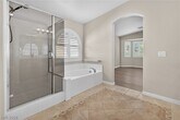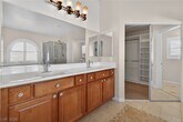 OUTSTANDING SINGLE-STORY HOME WITH 4 BEDROOMS IN MOUNTAINS EDGE! Welcome to this immaculate home in Mountains Edge, Las Vegas. This fantastic single-story home features 4 bedrooms, 2 full baths and 2-car garage with auto-door opener and epoxy floors. Wonderful open floor plan perfect to entertain or enjoy memorable moments with family and friends. All kitchen appliances included. Formal living room and dining areas with dramatic high vaulted ceilings. Primary bedroom with ceiling fan, ensuite bathroom with his-and-her walk-in closets and vanities, soaking tub and separate walk-in shower. All other bedrooms are equipped with ceiling fans and closets. Backyard features a covered patio, low maintenance landscape and firepit. Come and see this ready to move-in home now!