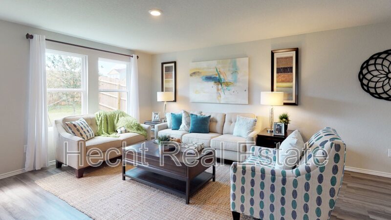 Located between Seguin-San Marcos-New Braunfels of Hwy 123 just South of FM758. ASK ABOUT ZERO SECURITY DEPOSIT option!! The property features a LARGE CORNER LOT-6098 Sq Ft. Lots of space for outdoor enjoyment. Located near end of street/cul-de-sac. No close neighbors. The Drexel model- This single-story home has a thoughtful layout. There is an owner's suite with a full bathroom and walk-in closet in the back for added privacy. The open living area is connected to the foyer and features a versatile open layout with the kitchen, living room and family room all in one area. The Kitchen features a refrigerator and microwave in addition to stove/oven-dishwasher-disposal. Everything you need!! Ceiling fans in all bedrooms and living room. Mini blinds included. Sprinkler system as well. Pet Screening required of all applicants. All Hecht Real Estate Group tenants are enrolled in the mandatory Resident's Benefit Package. Pictures to be updated. Pictures are virtual from builder and similar home.