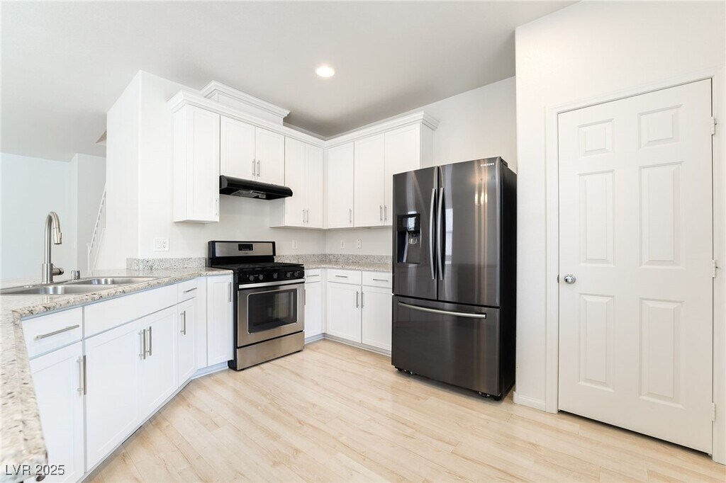 Welcome to this beautiful 4 bedroom, 3 bathroom single-family home perfectly situated in the highly sought-after Southwest area of Las Vegas. With an unbeatable location, you'll be just steps from Walmart Supercenter, and only minutes away from Durango Station, Southern Hills Hospital, the brand-new Costco, and Sam's Club. Convenience truly meets comfort here! Built in 2016, this home offers a generous lot, complete with a 2-car garage. The thoughtful floor plan features one bedroom conveniently located downstairs perfect for guests or multi-generational living. Step outside to your own backyard oasis! A covered patio with a built-in cooking counter, sink, and BBQ grill makes it easy to entertain friends and family year-round. Whether you're enjoying the spacious interiors or the perfectly designed outdoor retreat, this home has it all!