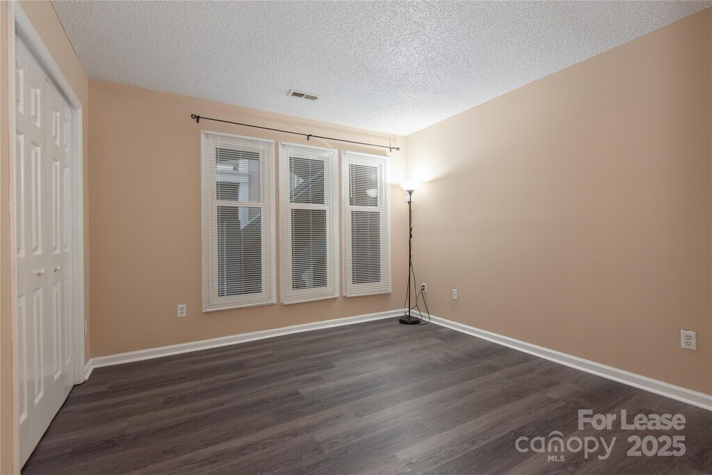 Beautiful and spacious 2-bedroom,2-bath condo located in the Audubon Parc community near UNC Charlotte! This ground-level end unit offers a bright open floor plan with soaring vaulted ceilings,large windows,and updated flooring throughout. The living area features a cozy fireplace and direct access to a screened porch plus a private walled patio overlooking lush green space — perfect for relaxing or entertaining. The kitchen includes white cabinetry,stainless-steel appliances,and plenty of counter space. Both bedrooms are generously sized,and the primary suite features a private bath and walk-in closet. Fantastic location close to UNC Charlotte,University Research Park,I-85,shopping,dining,and Light Rail access. Washer/dryer connections included. Available now. Pets conditional.